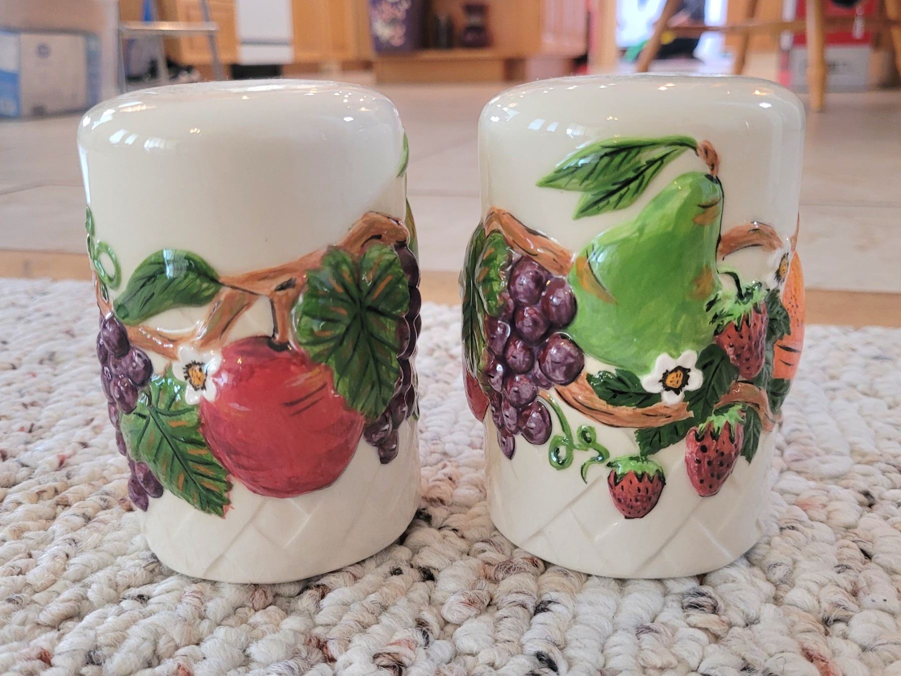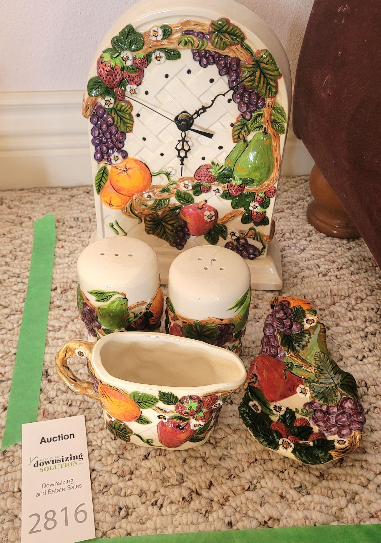 12" Ceramic basket weave clock, S&P, creamer and spoon holder. Pickup at 9 am