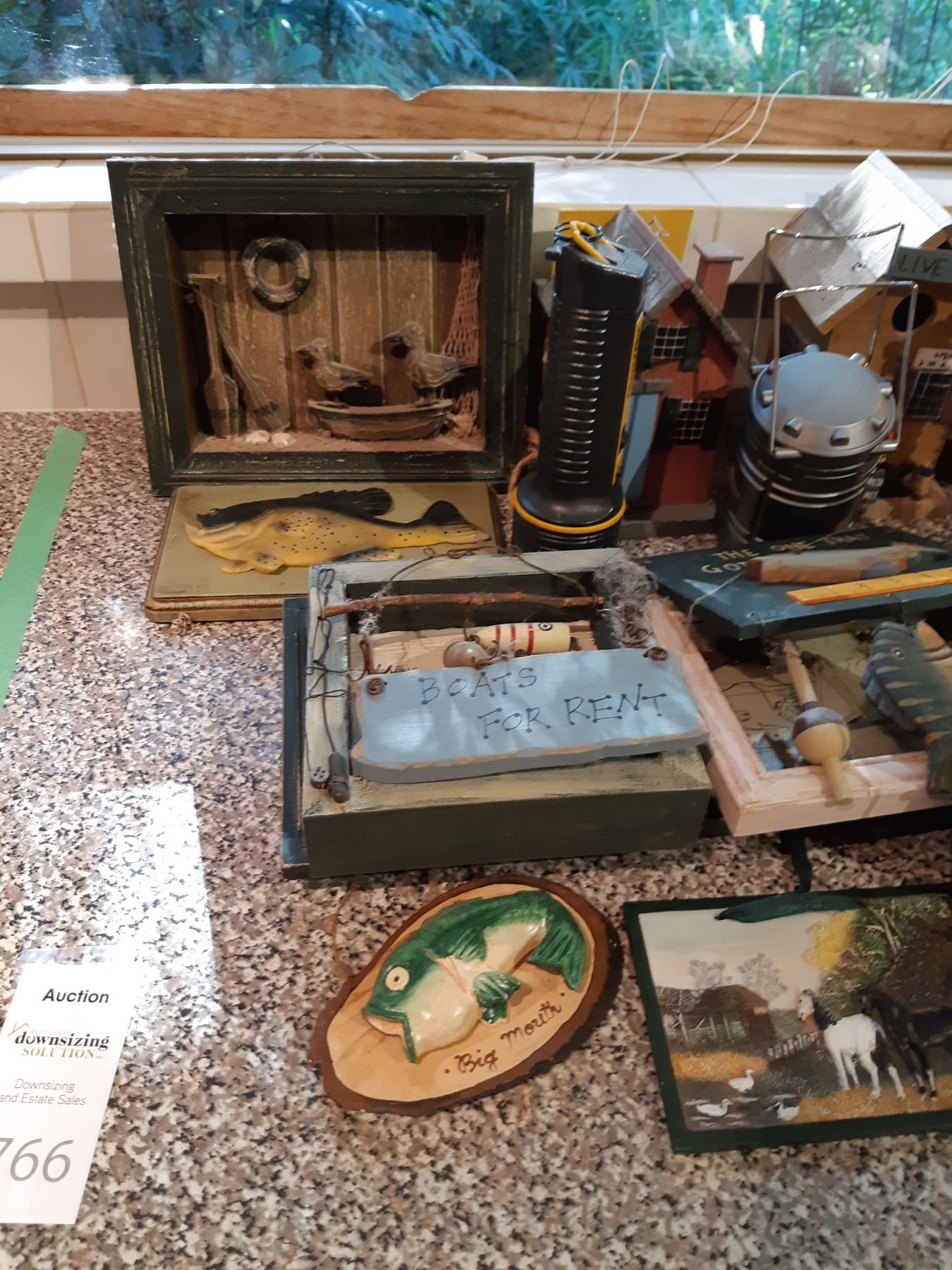 Assortment of fish themed decor, cabins & more. Bring packing supplies. Pickup 9am.