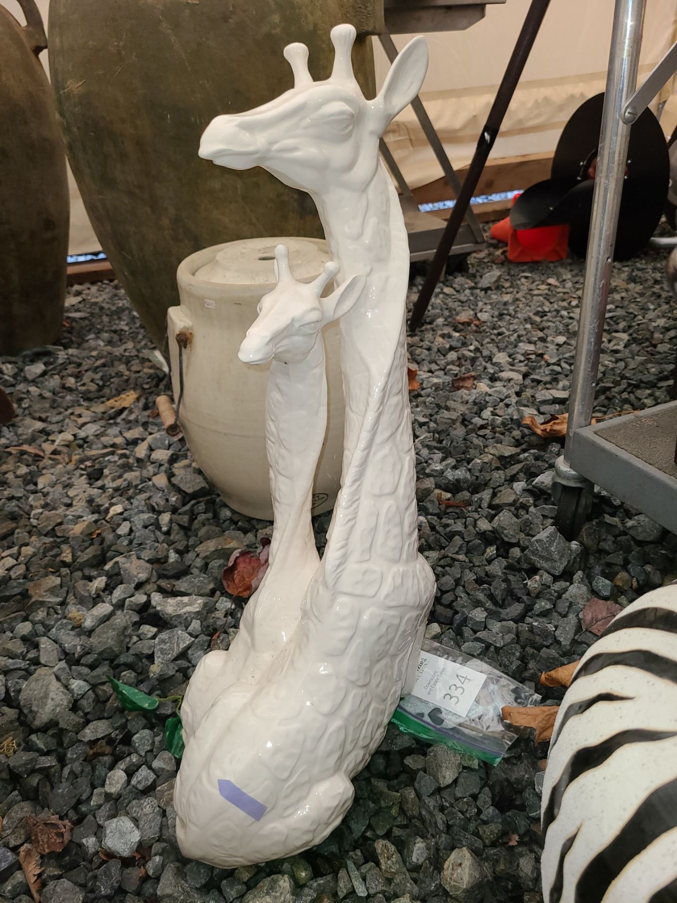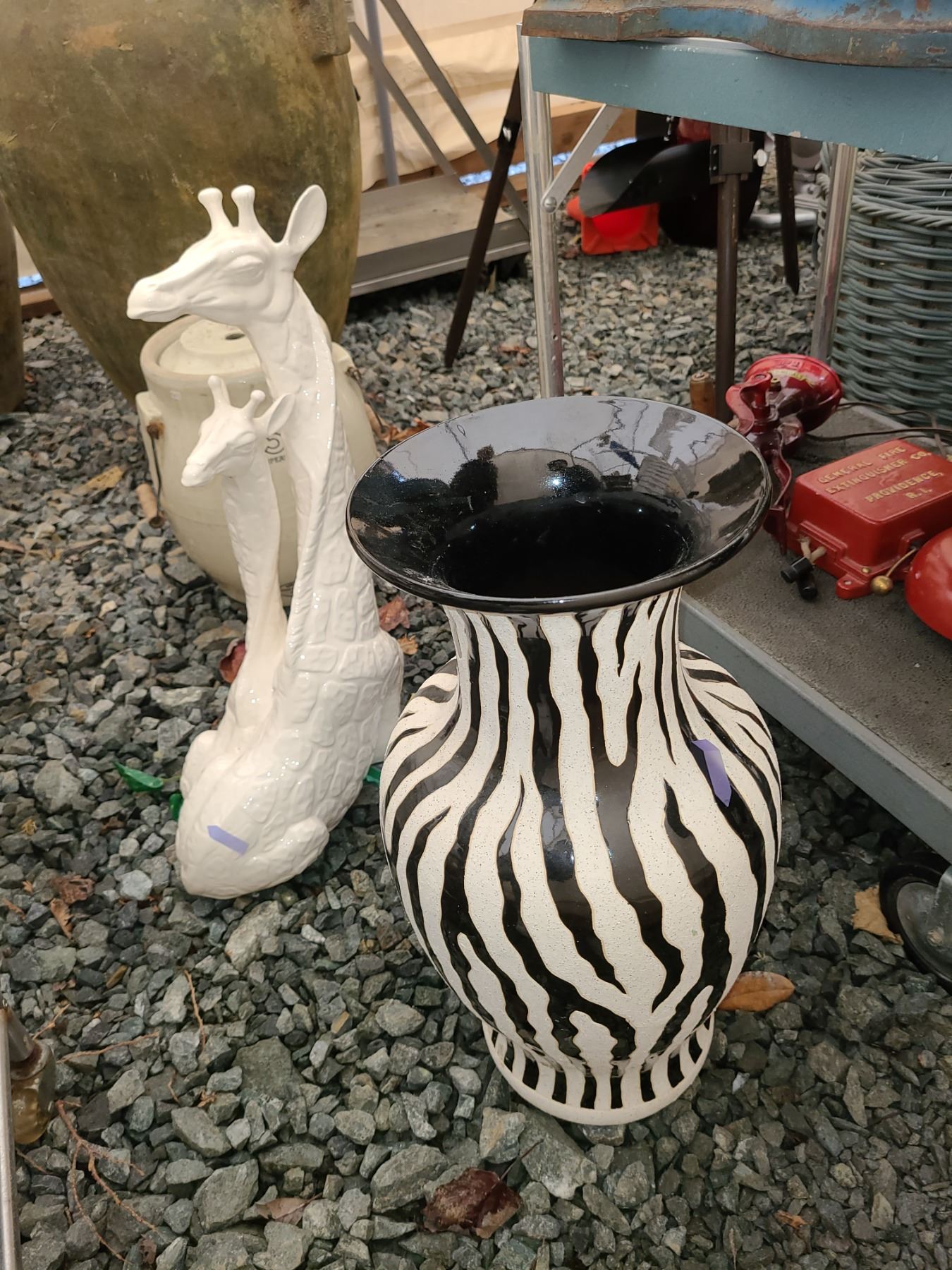 Ceramic Geraffe about 16 inches tall and tall vase in zebra markings. Bring packing material and pickup at 10 am