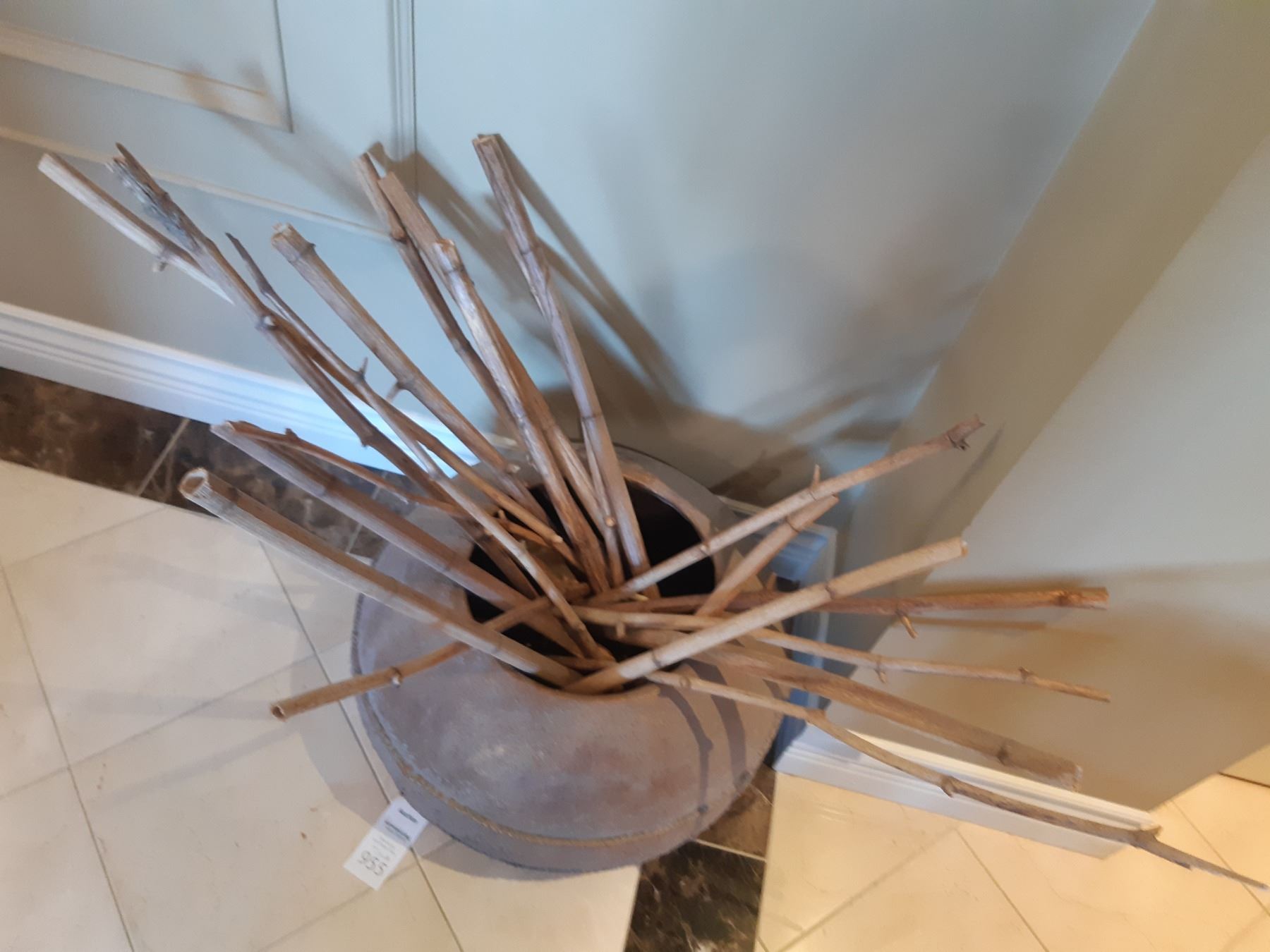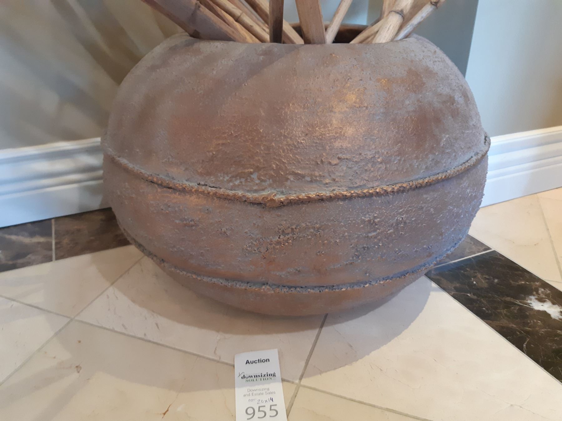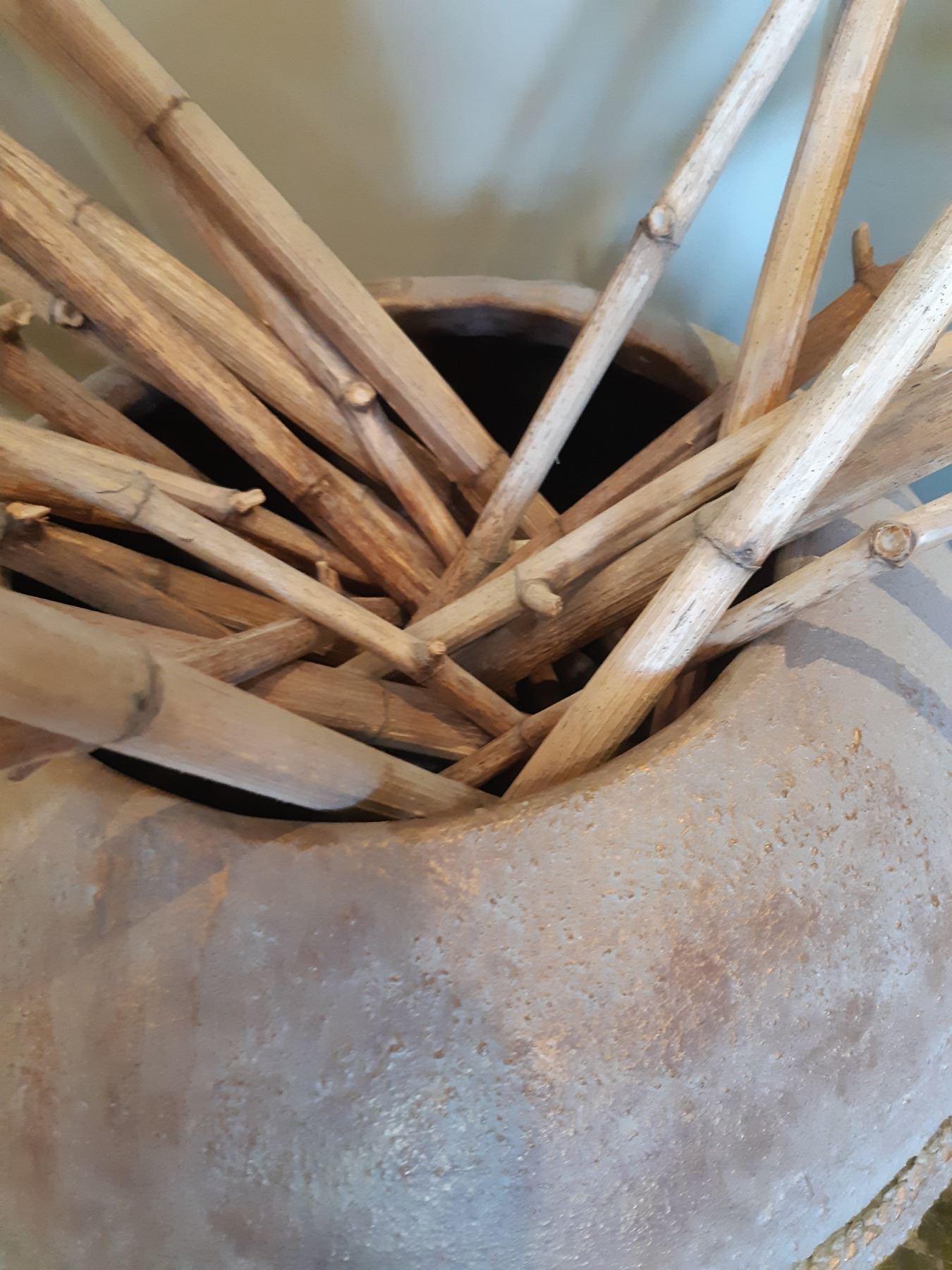 Round ceramic container 20x14 with bamboo Pickup at 9 am