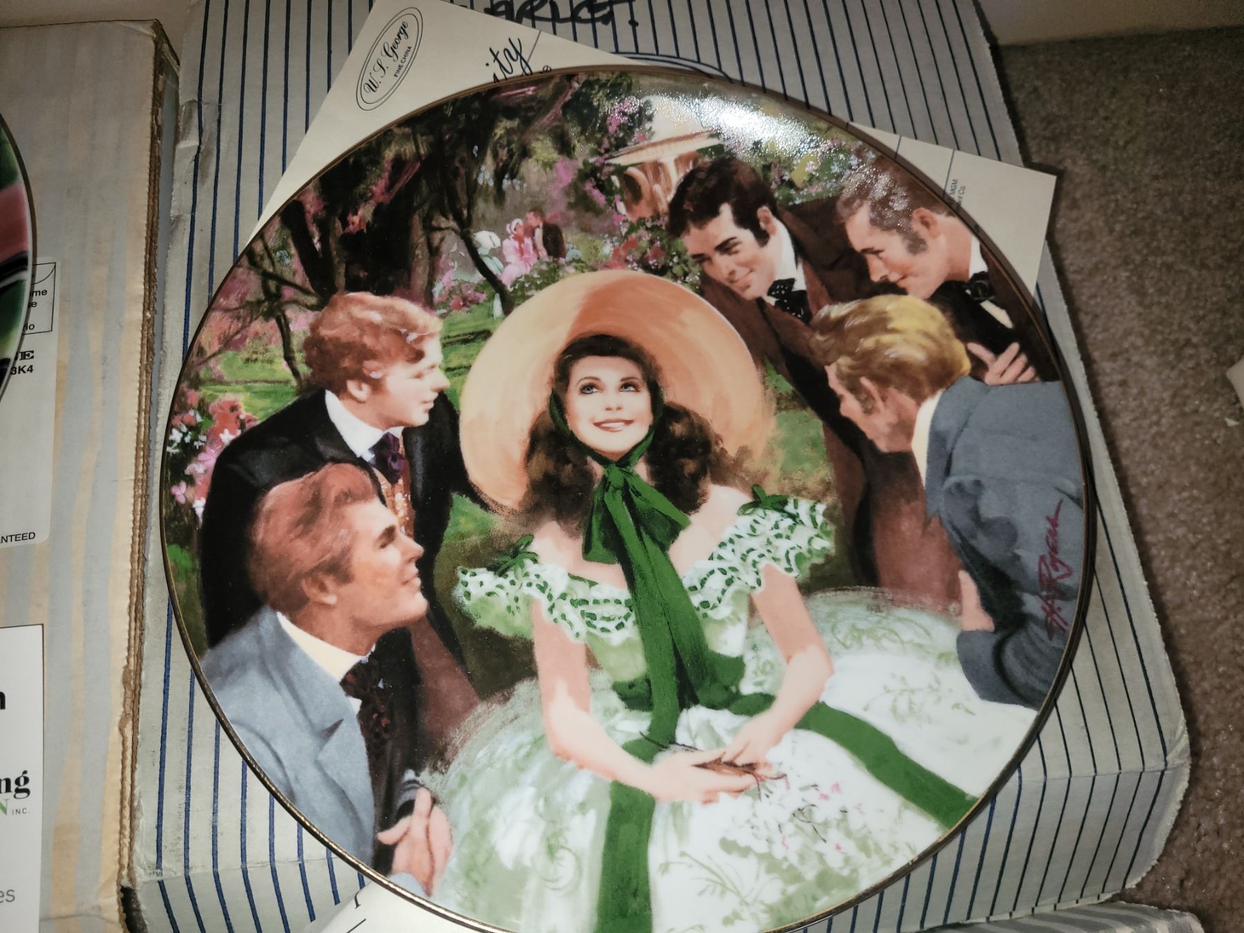 9" Marilyn Monroe, Elvis Presley, The Beatles, Gone With The Wind & more decorative ceramic plates with boxes. Pickup 9-10am