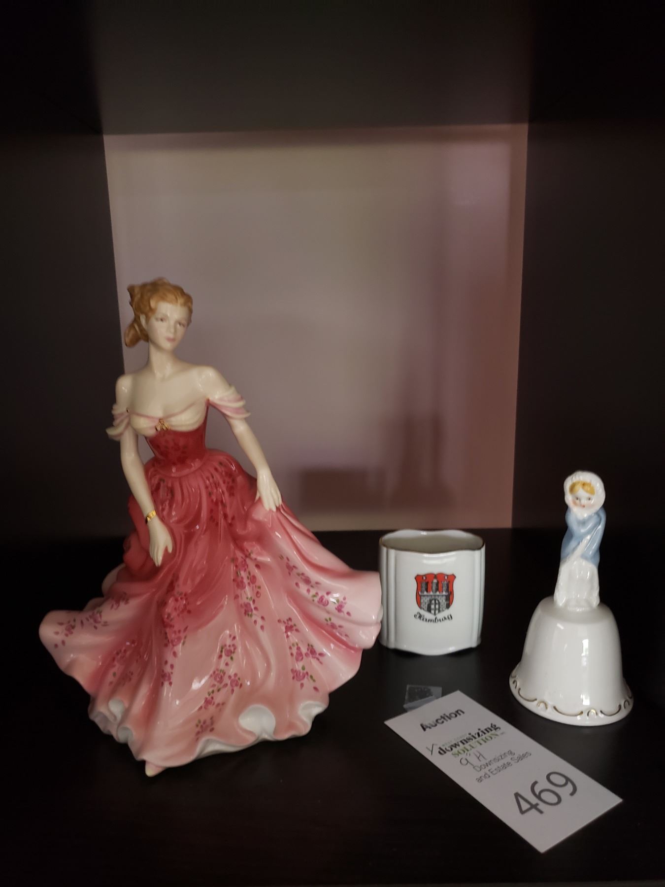 9 inch royal dalton statue plus bell and German container. Bring packing material and box. Pickup 9-10am