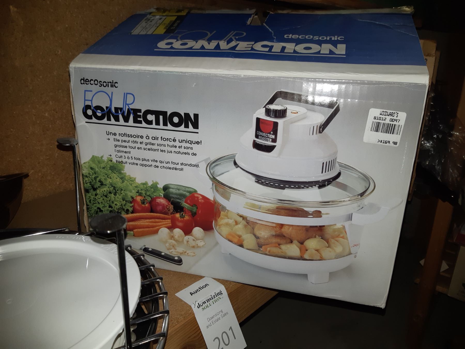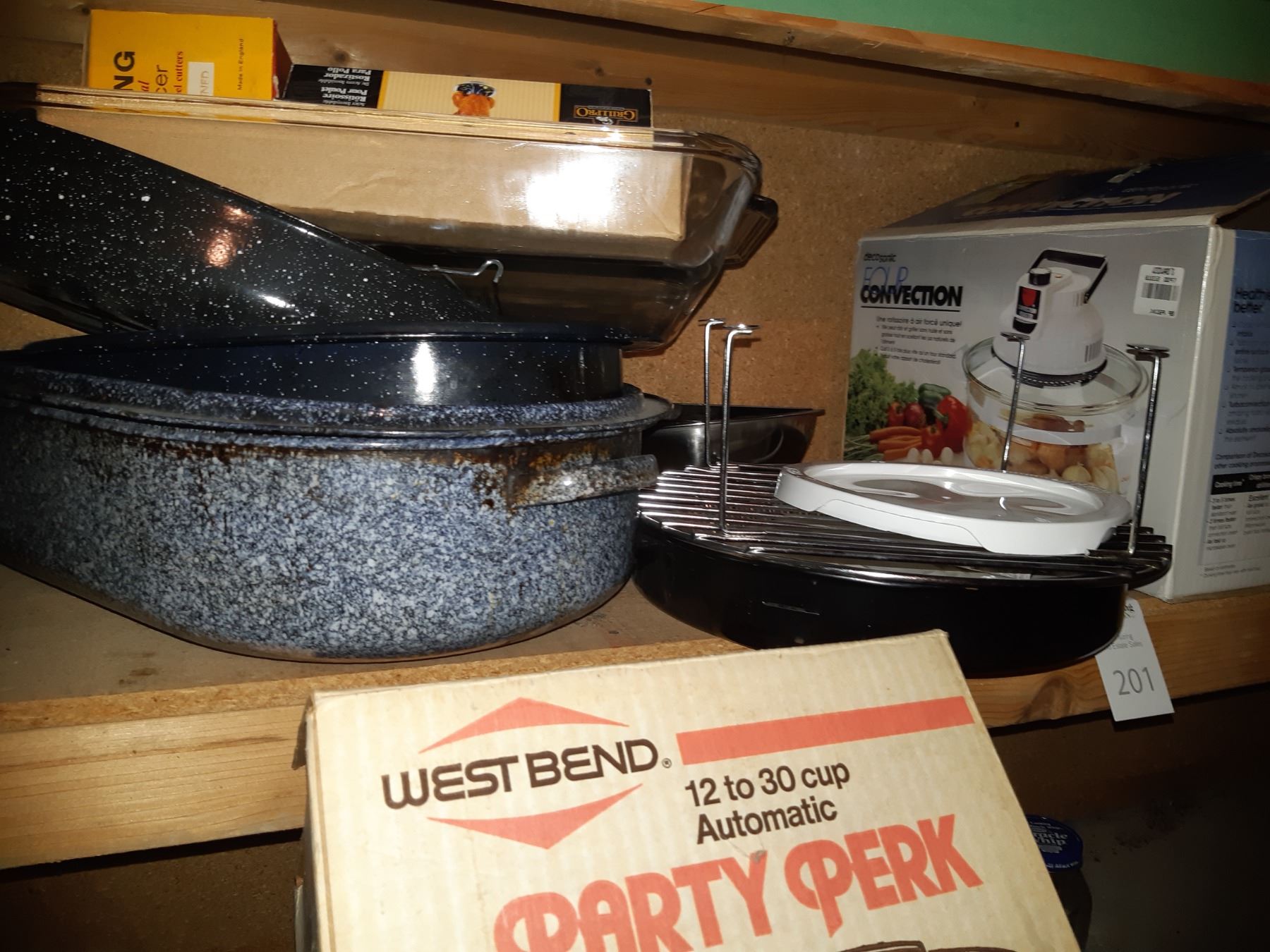 Decosonic Convection Roaster, Presto Pressure Cooker, Sponge National Mincer and more. All appliances untested. Please bring packing materials. Pick up at 9 am.