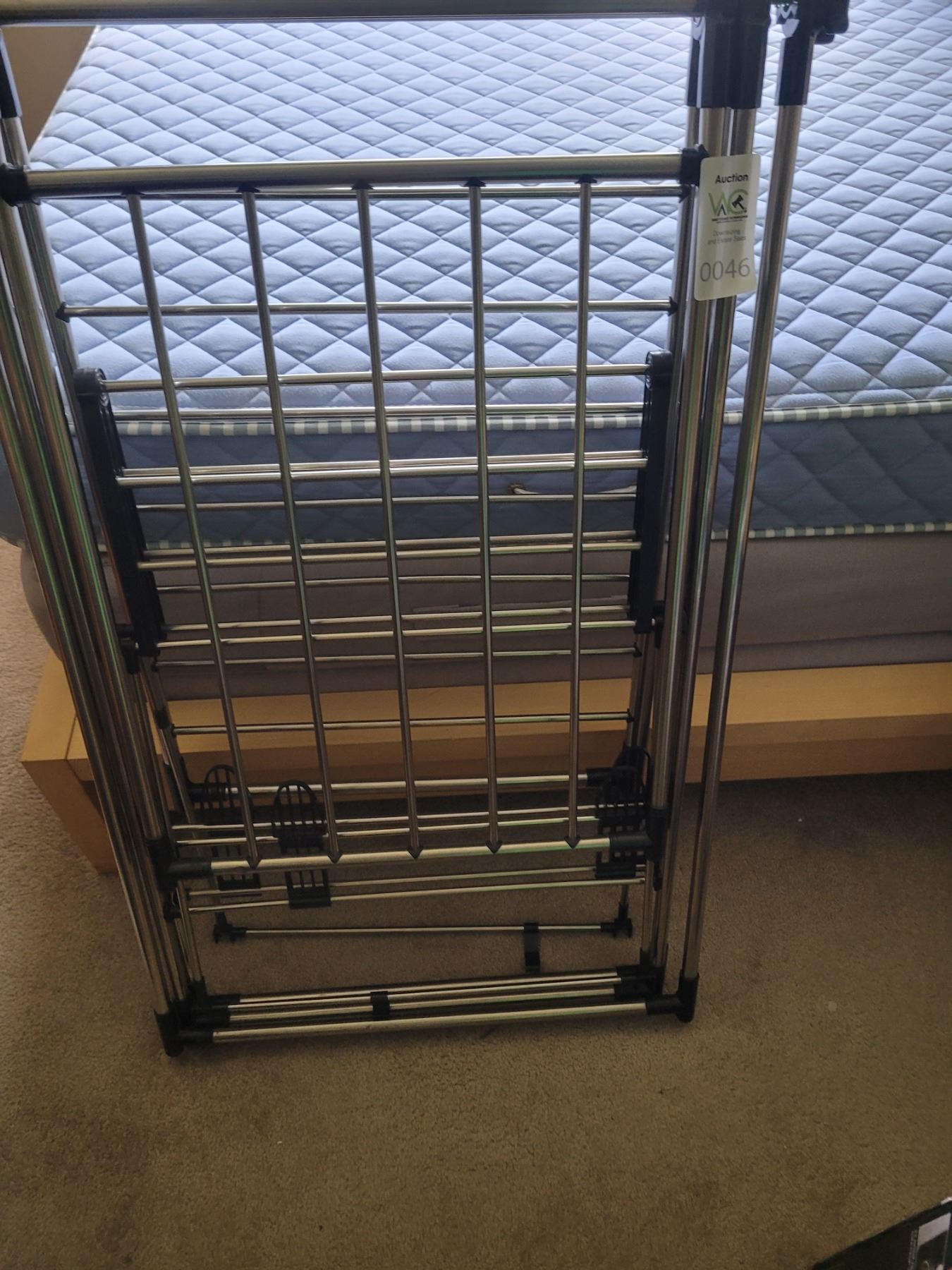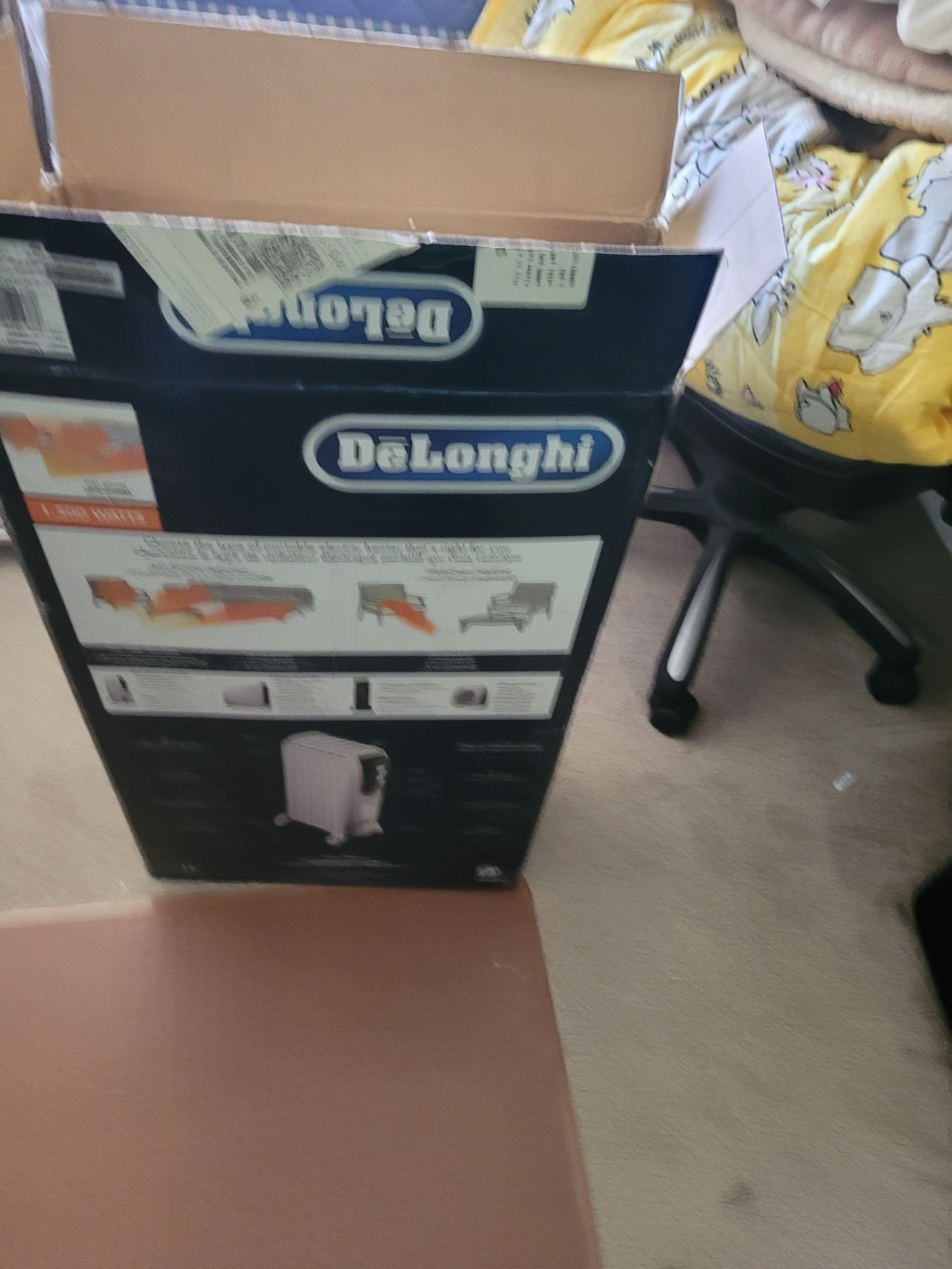 Delonghi heater, untested, clothing and shoe rack. Pick up 9-10.