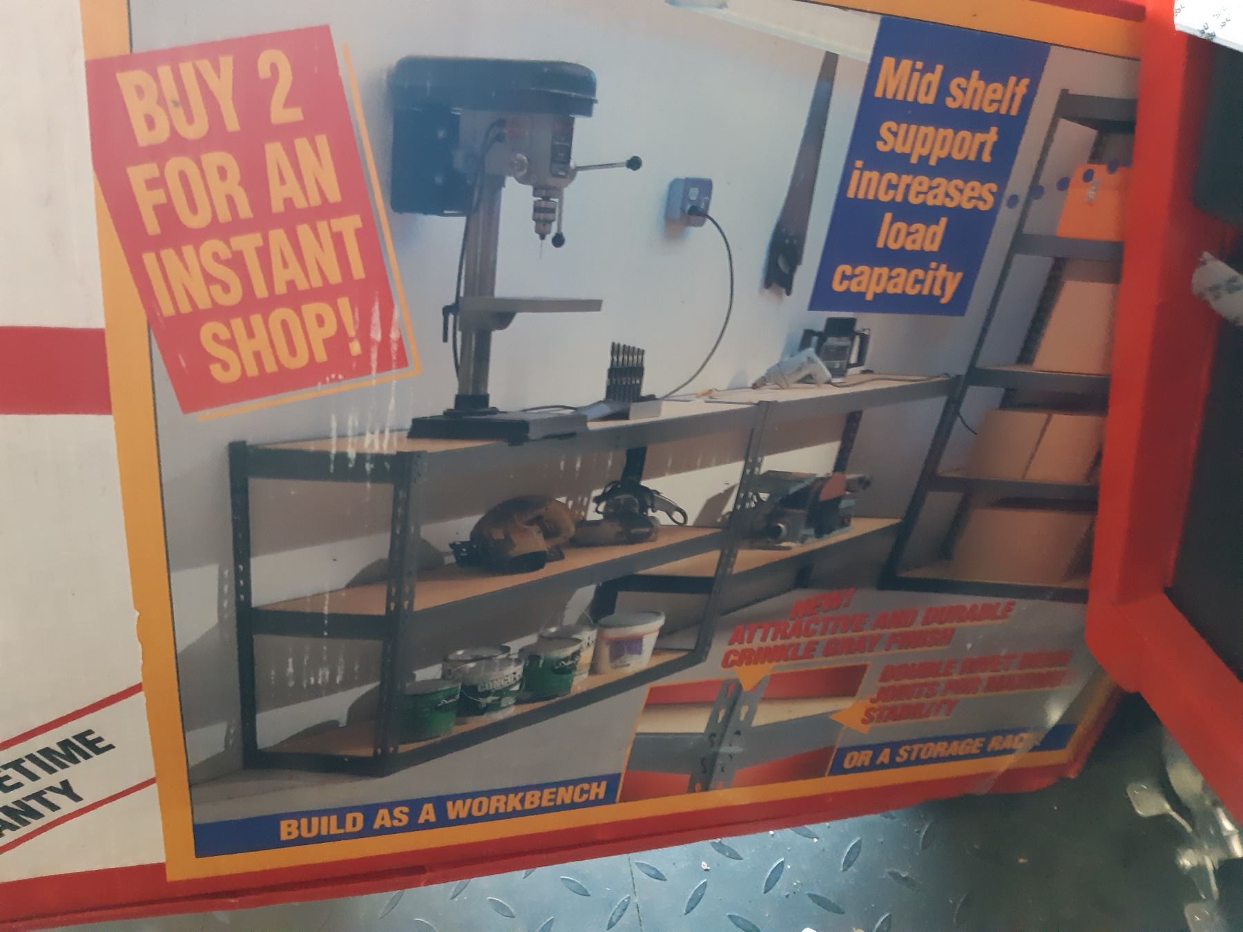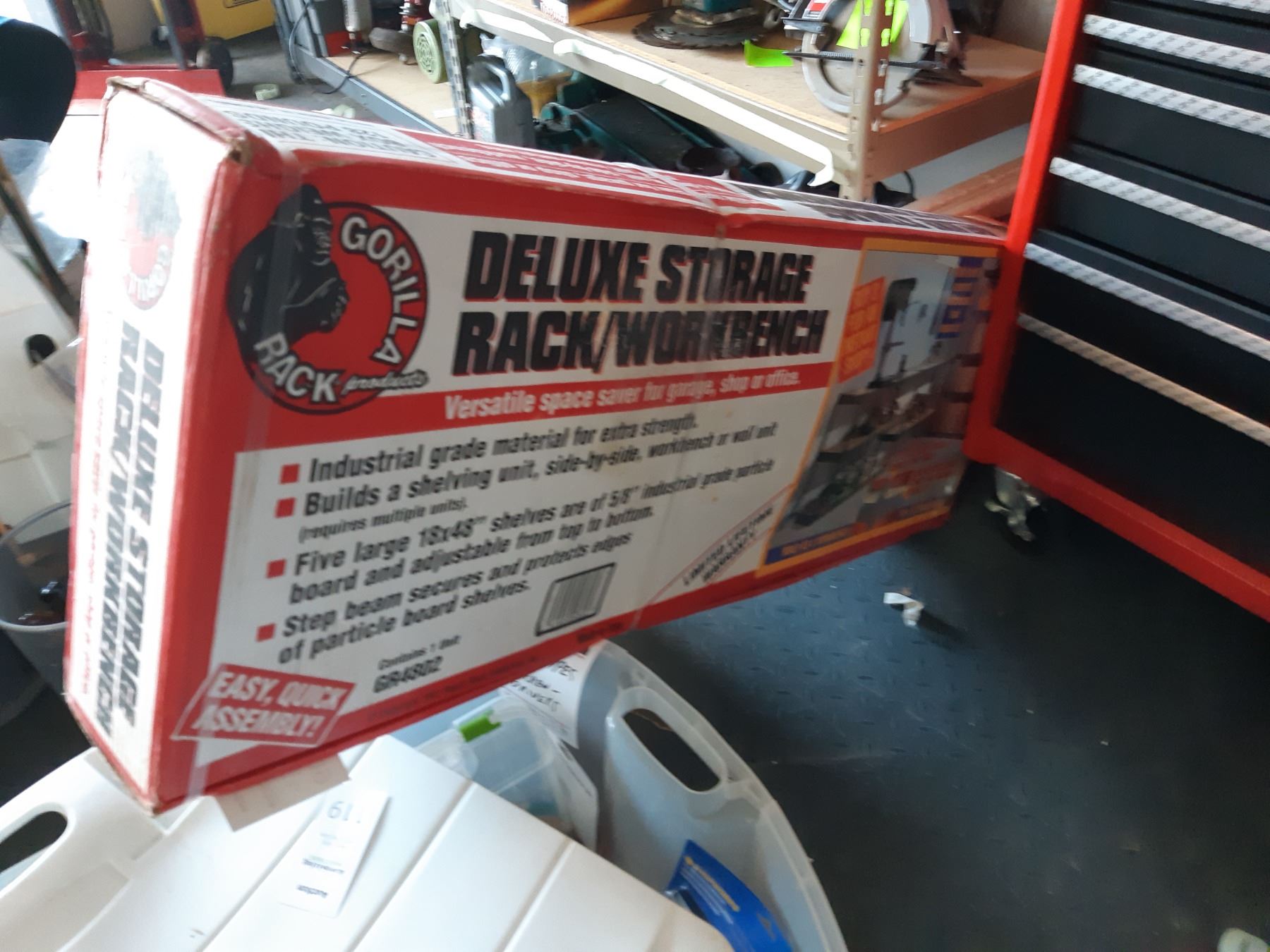 New in box Gorilla bran, five 18x48 shelves. Heavy, bring help to carry. Pickup at 10am