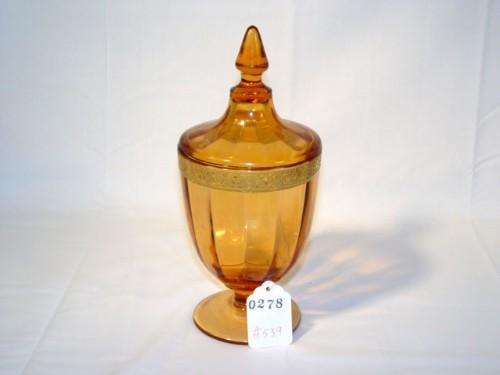 AMBER GLASS GILT EDGE SWEET MEAT JAR 10"