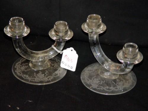 ETCHED DBL BRANCH GLASS CANDLE HOLDERS