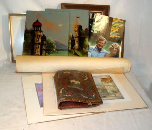 LOT REVERSE PAINTINGS ON GLASS, LITHOS, PRINTS, ETC.