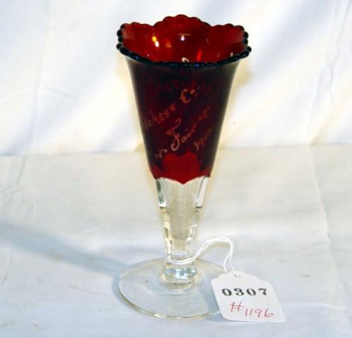 DUTCHESS COUNTY FAIR 1902 RUBY FLASHED VASE