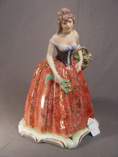 PORCELAIN FLOWER GIRL FIGURE 15" HIGH MADE IN ITALY