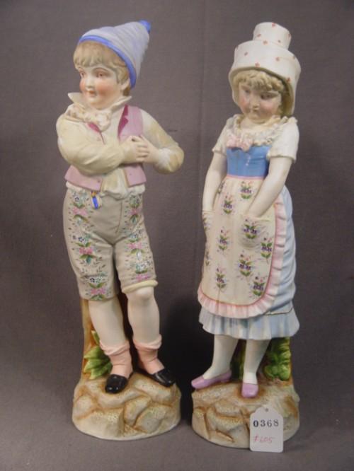 PAIR OF BISQUE BOY AND GIRL FIGURES 19" HIGH (GIRL REPAIRED)