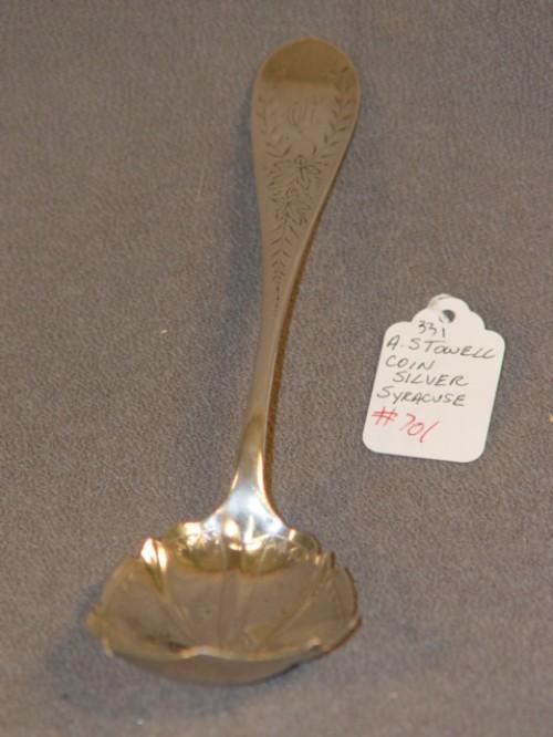 A. STOWELL SYRACUSE BRIGHT CUT COIN SILVER SERVING SPOON