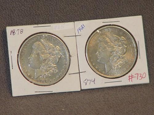 SILVER DOLLARS 1878, 1921- 2 X THE MONEY