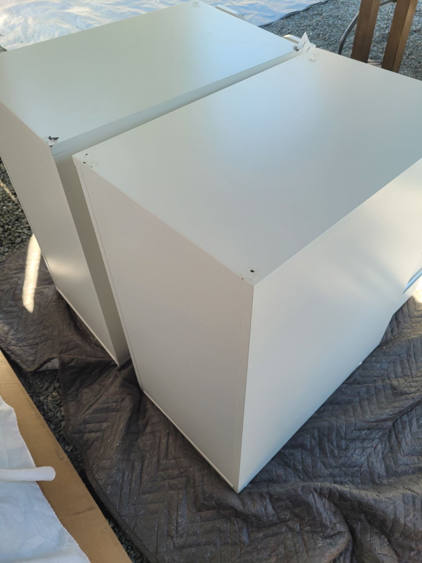 Large heavy wood desk top 98x26x28 sits on top of two file drawers. 14x23x28 each. Pickup at 11 am