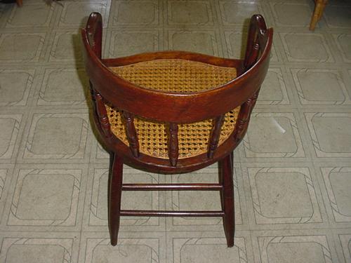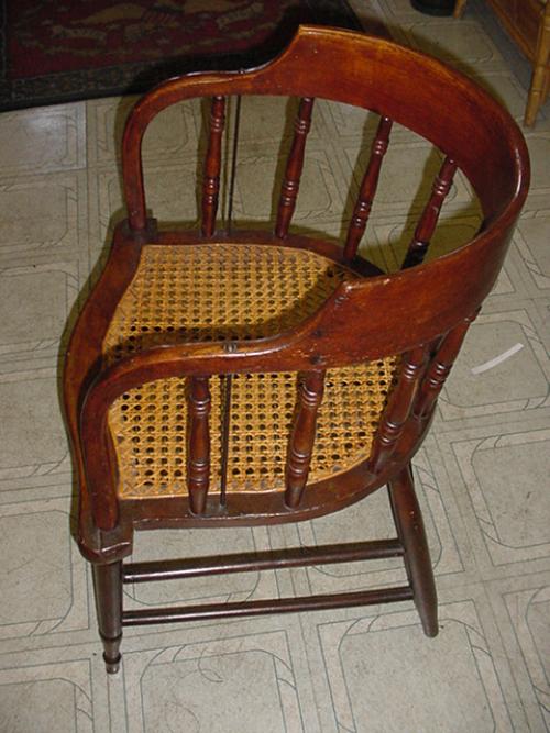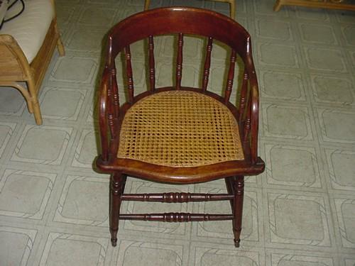 1880 American Desk Chair with Cane Hand Woven Seat, Sheraton Style. One continuous back piece starts off at the seat, comes up, wraps around and back down to the seat again. Wood Type Unknown