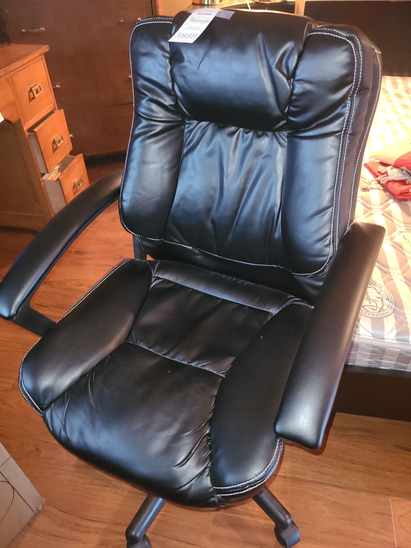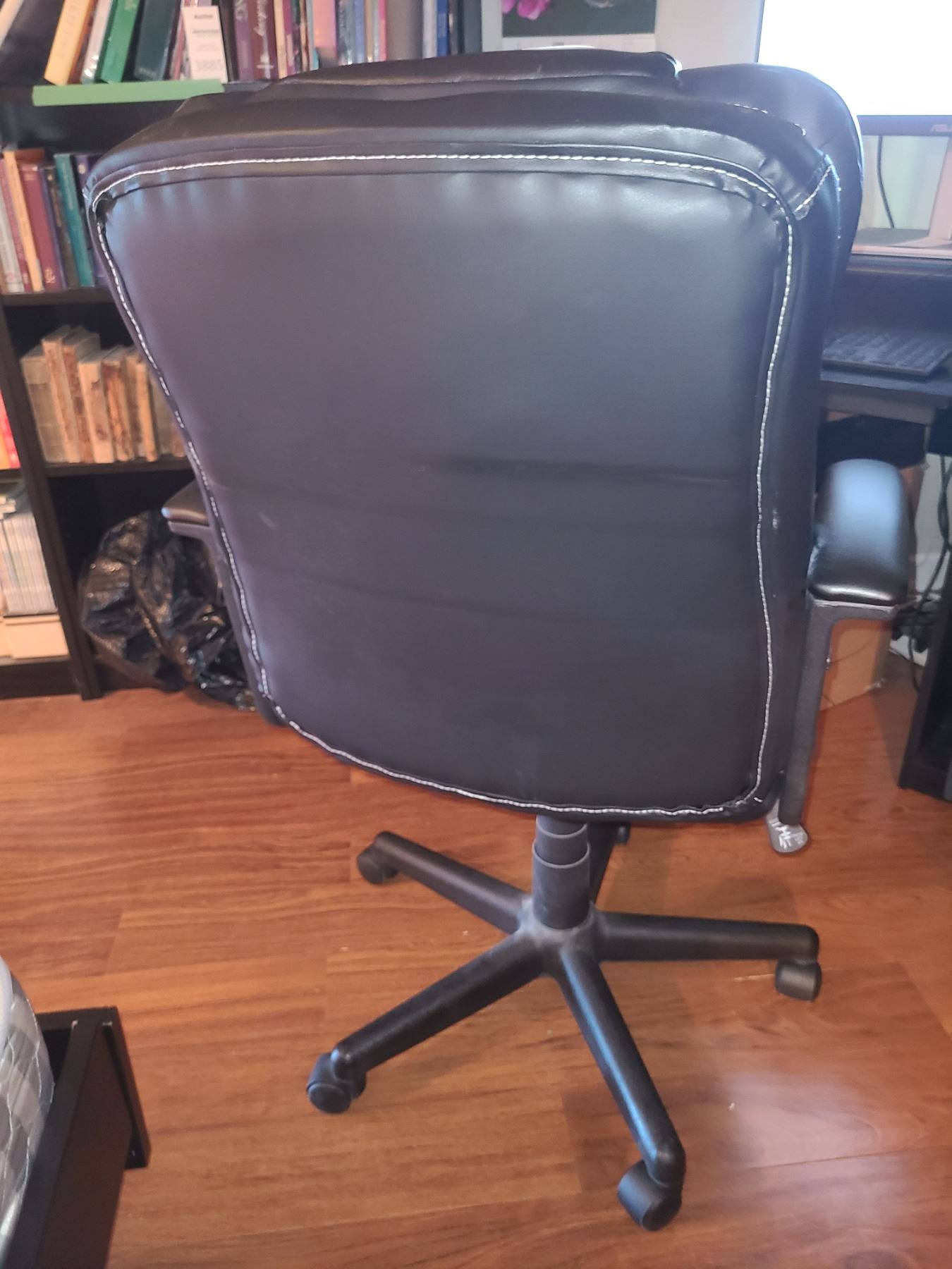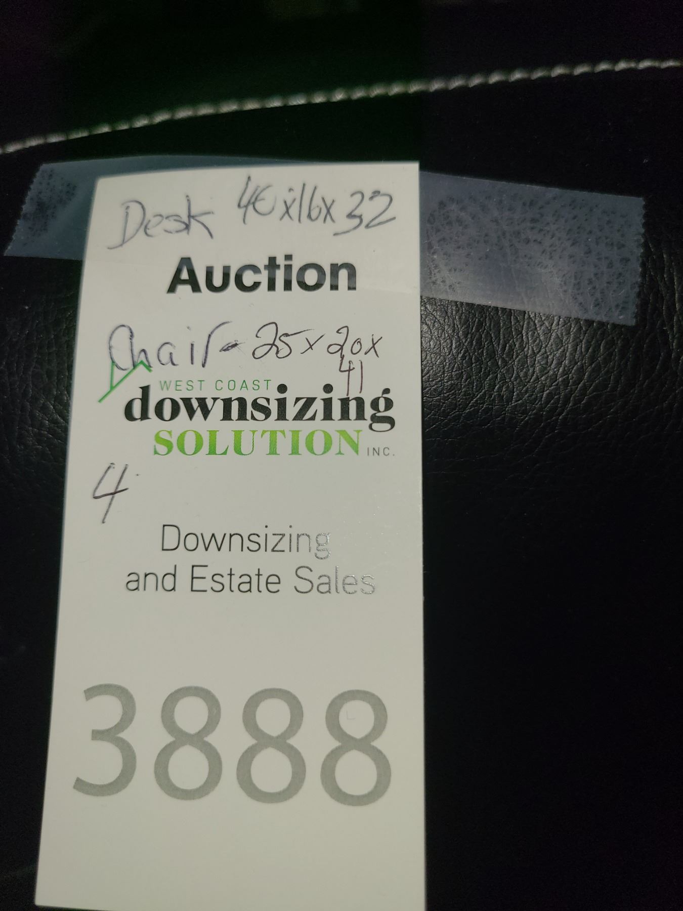 Desk with pull out for keyboard 40x16x32 note scratches and Office Chair 25x20x41.Contents on desk not included, Chair & Desk only. Located upstairs. Bring help to remove and pickup at 11 am