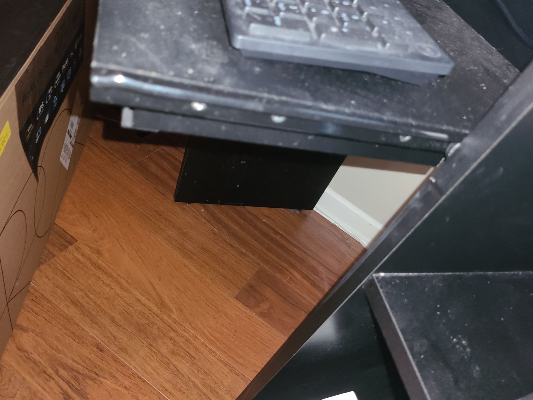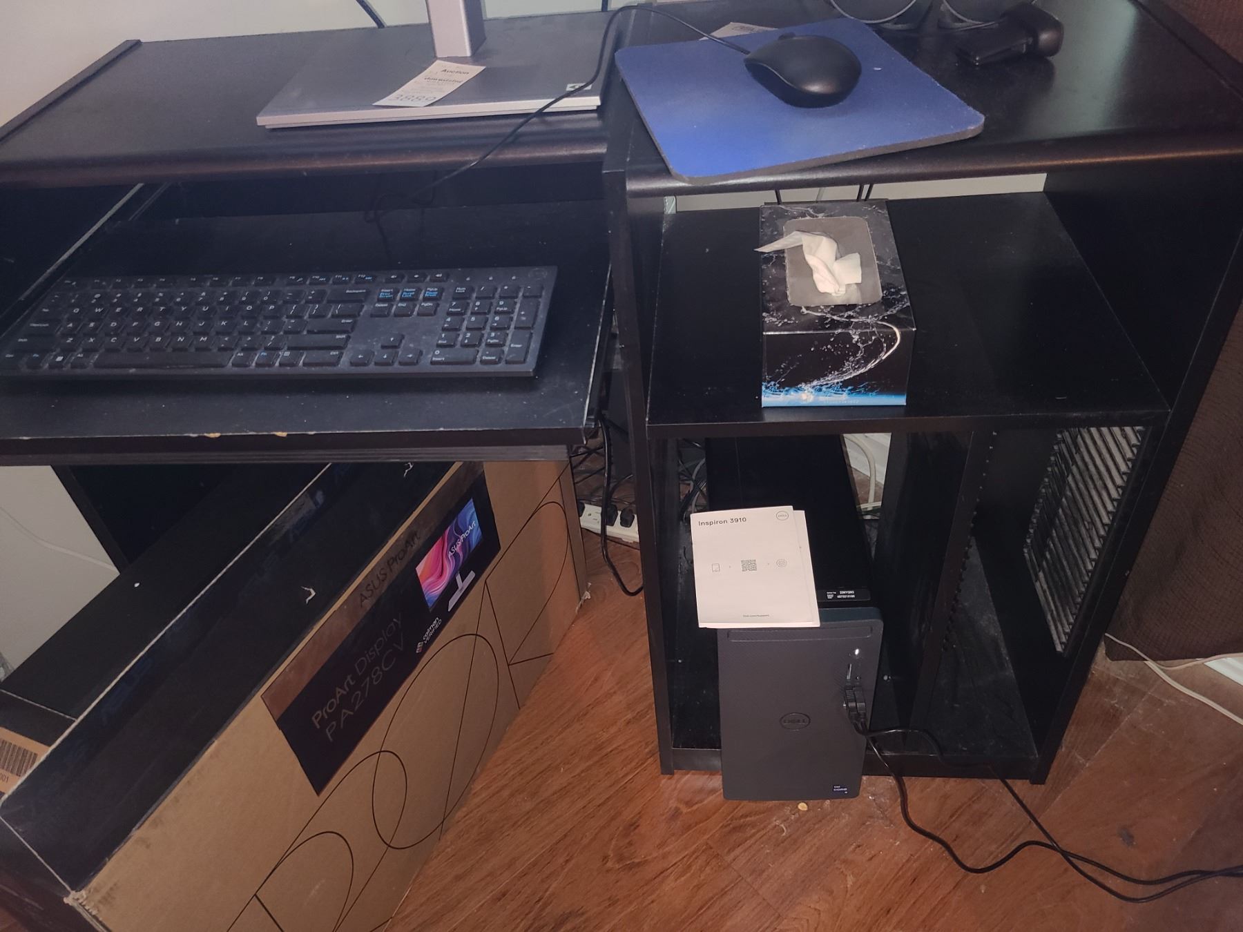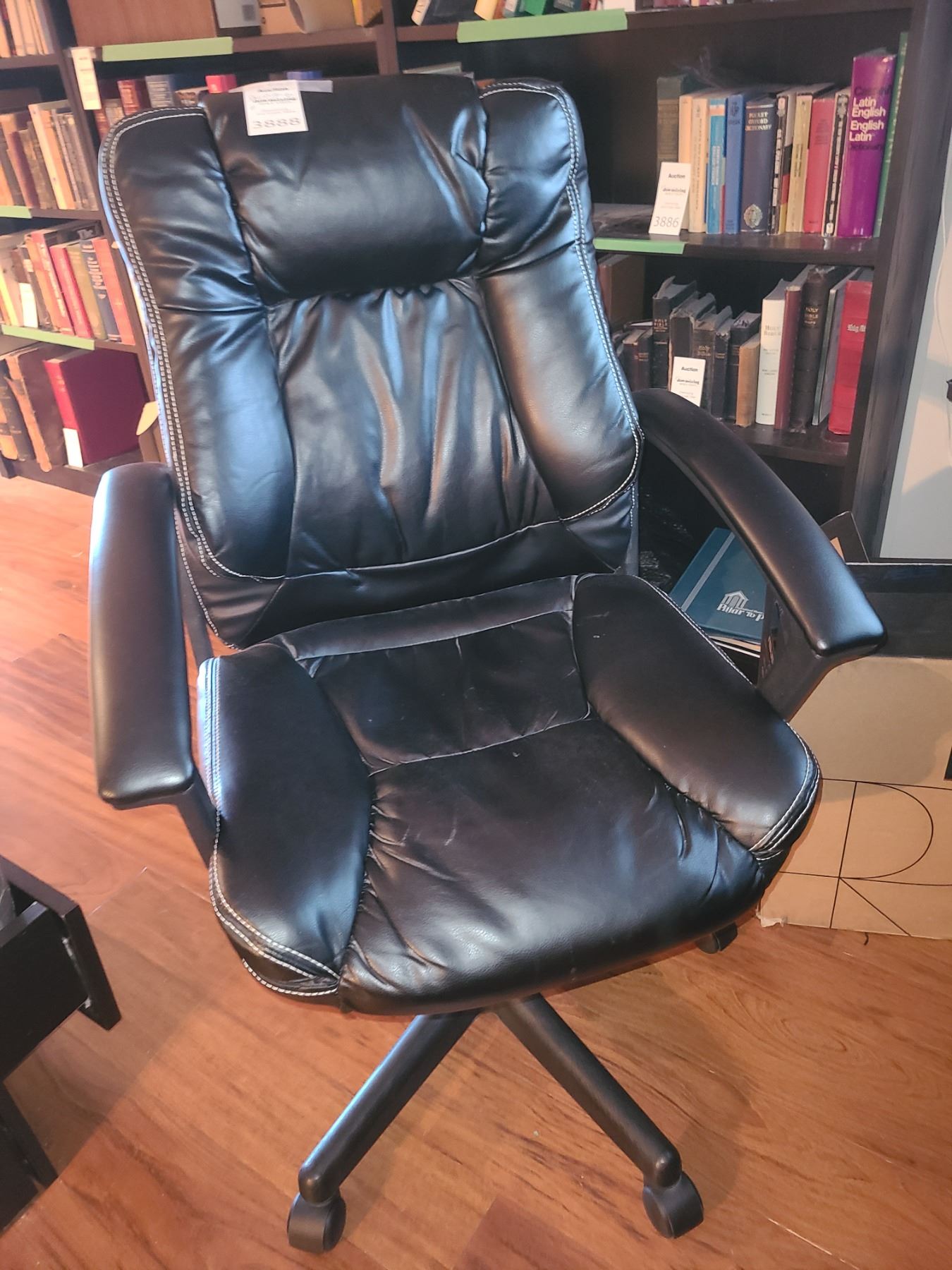 Desk with pull out for keyboard 40x16x32 note scratches and Office Chair 25x20x41.Contents on desk not included, Chair & Desk only. Located upstairs. Bring help to remove and pickup at 11 am