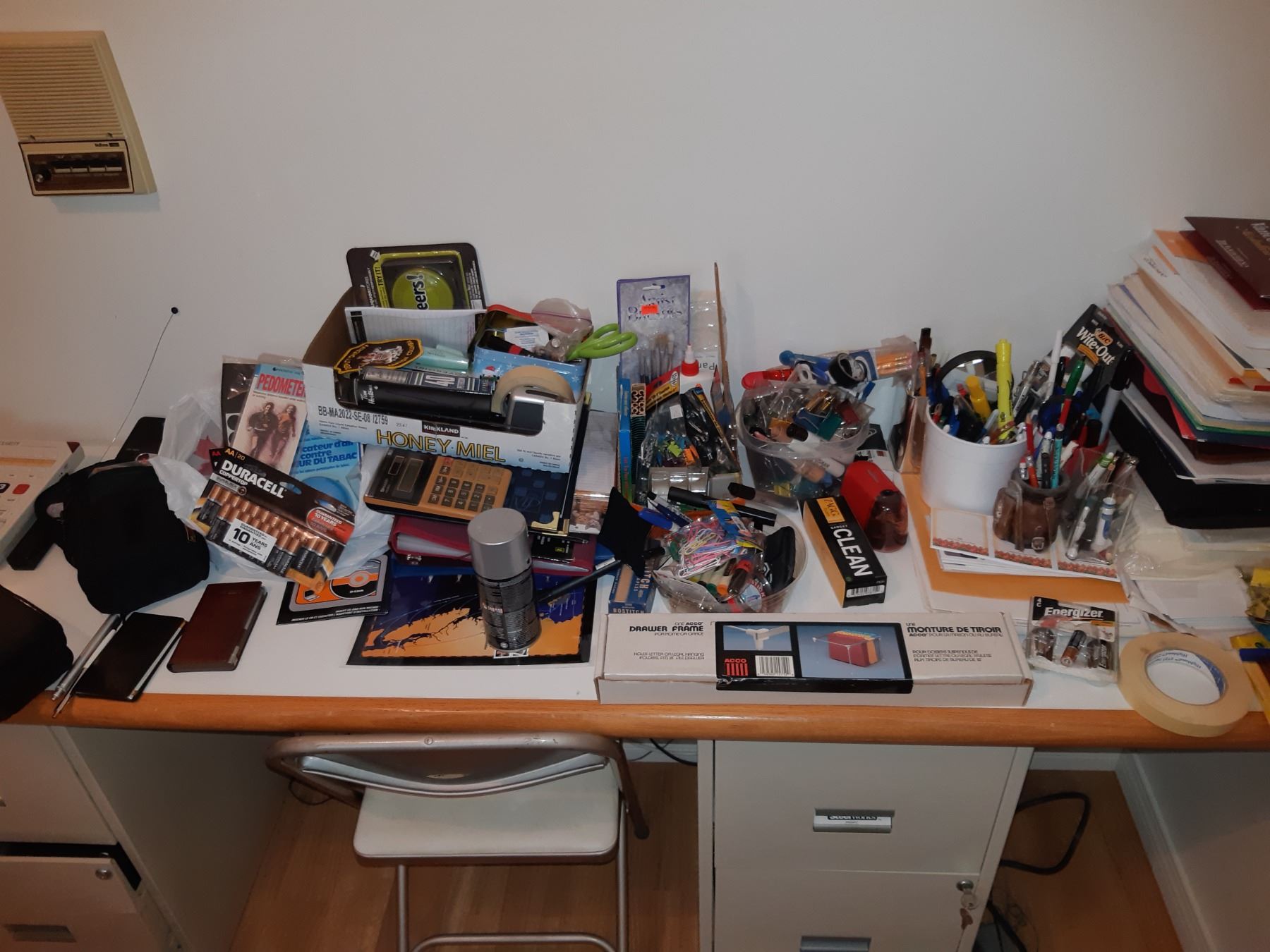 Filing cabinet with tabletop, 78x20, file drawers 18x15x28, batteries, pens, phone, tablets, paint brushes, calculators, and more, bring boxes for packing, help to load, pickup 11am