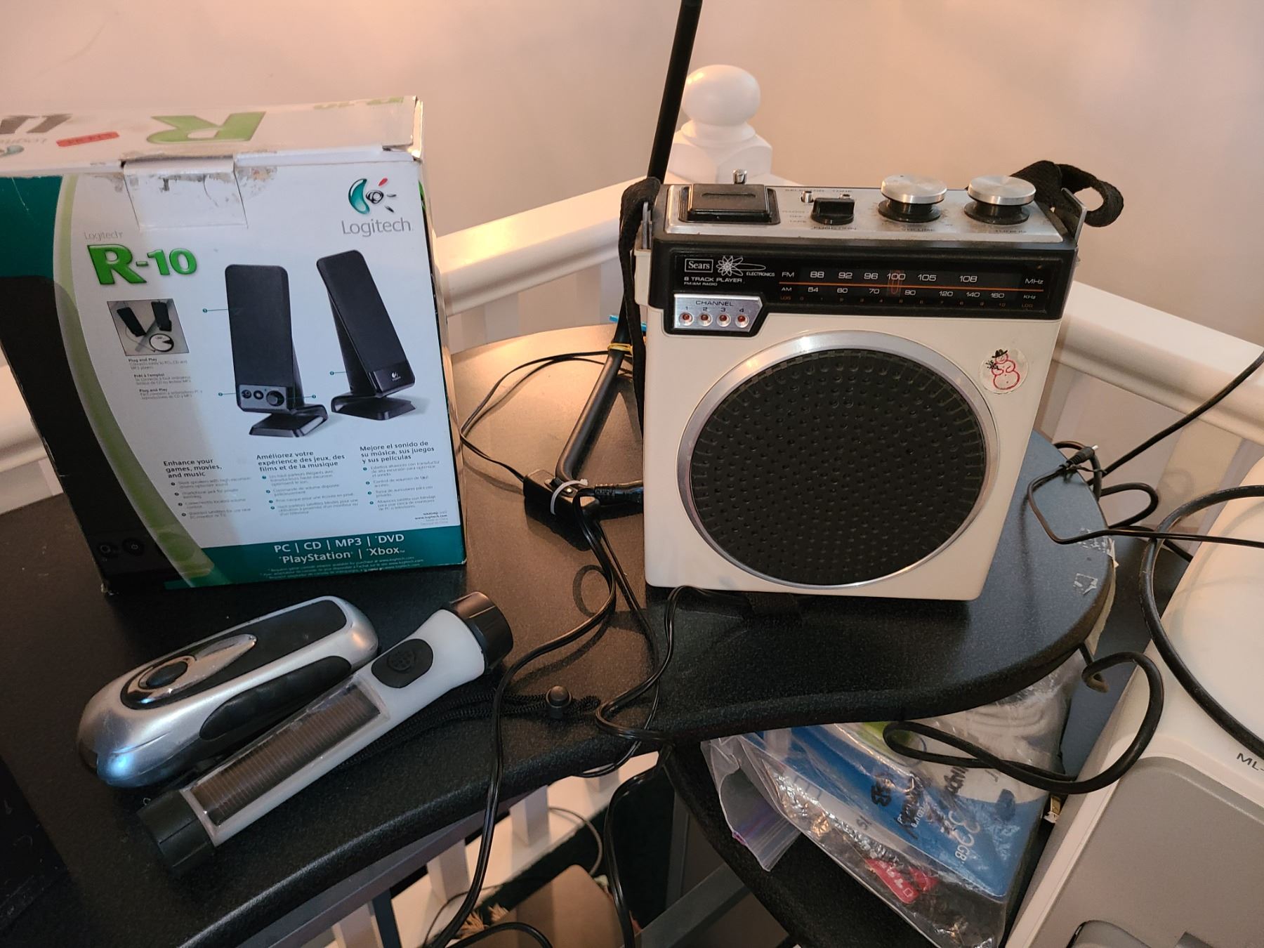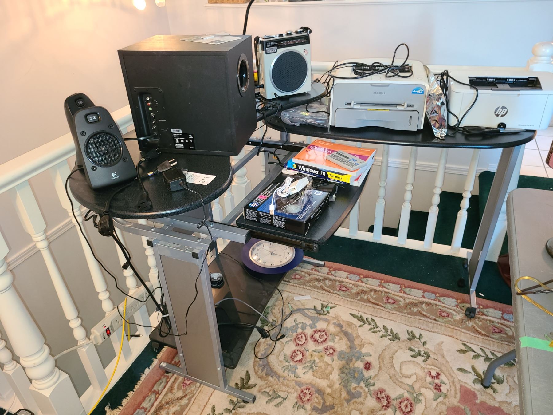 Desk and more hp printer, Sears radio Logitech speakers and sub MN:S-00095 pick up 11am