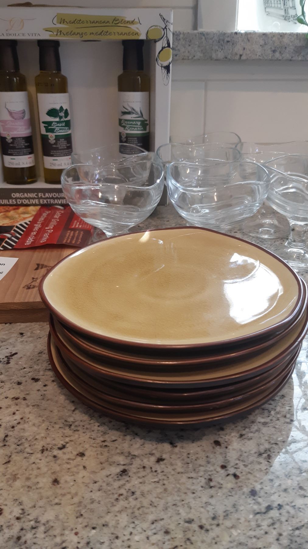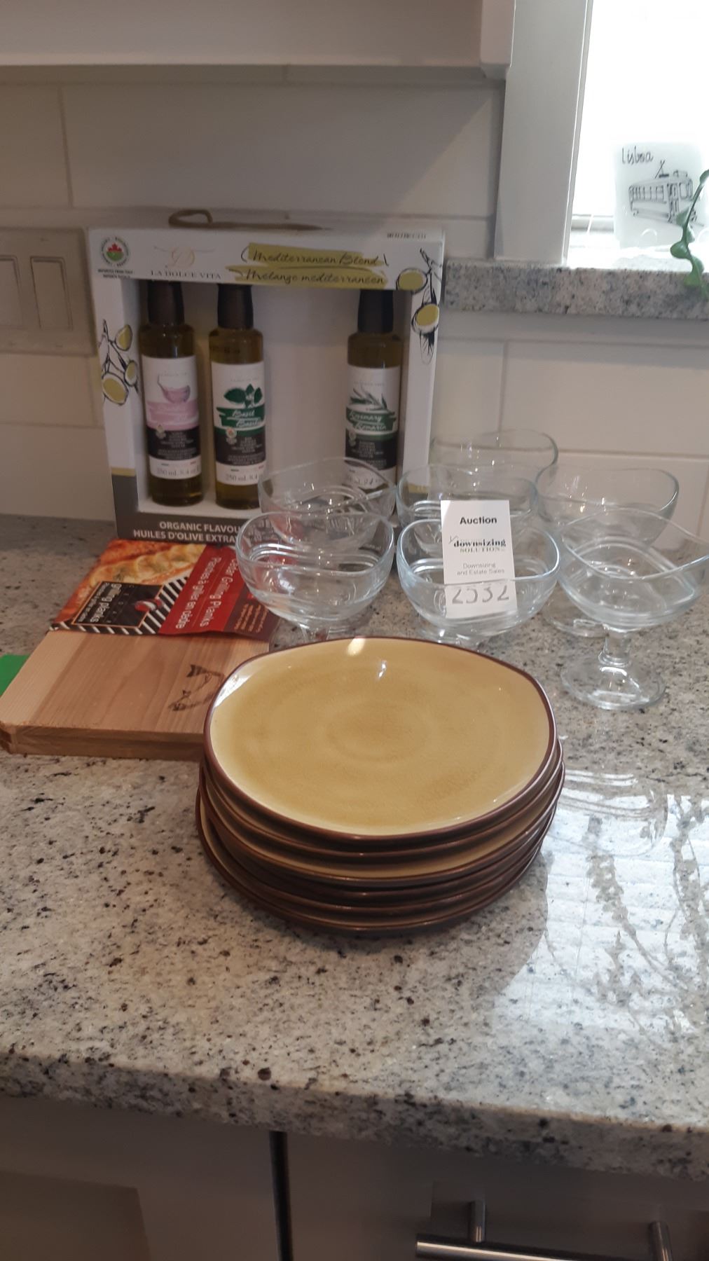 Glass dessert bowls, plates, grilling planks, organic flavoured olive oils, pickup 9am