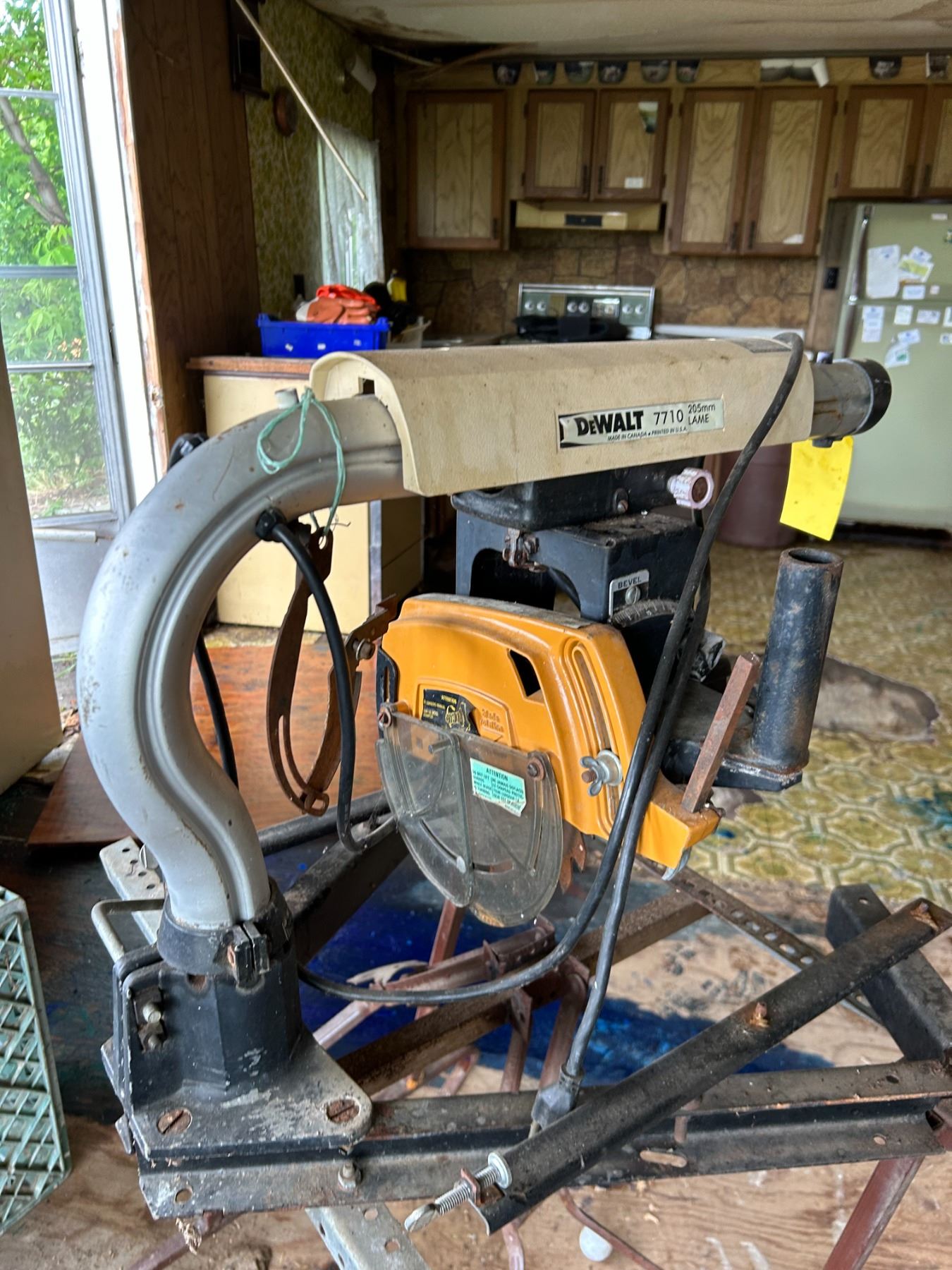 Dewalt 7710 radio arm saw. Works. ( inside house trailer).