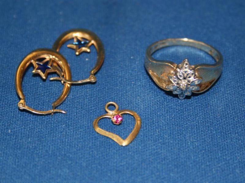 Retail Value $1,720 14Kt Yellow Gold -- Diamonds Fashion Cluster Ladies Ring -- Retail Value $820 14Kt Yellow Gold -- Gold Star Design Ladies Hoops--- Retail Value $470 14Kt Yellow Gold -- Ruby Heart Design Ladies Pendant -- Times the Money