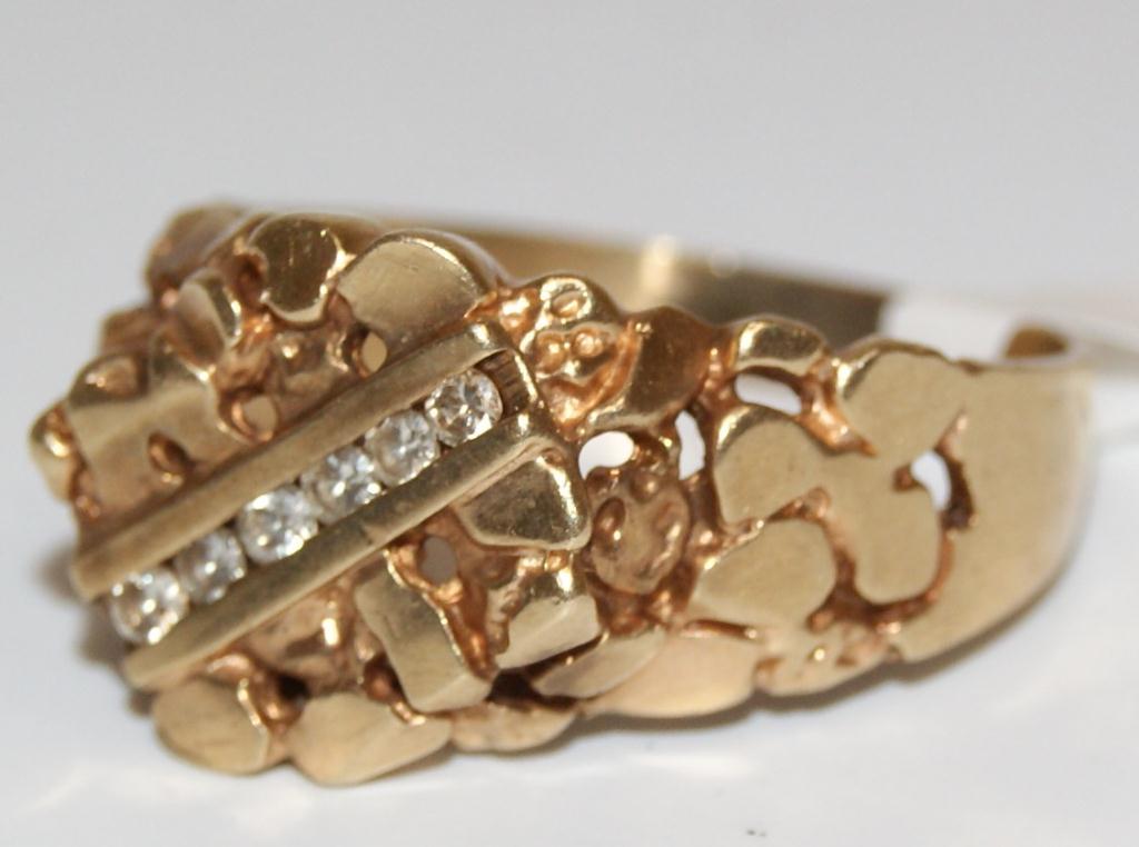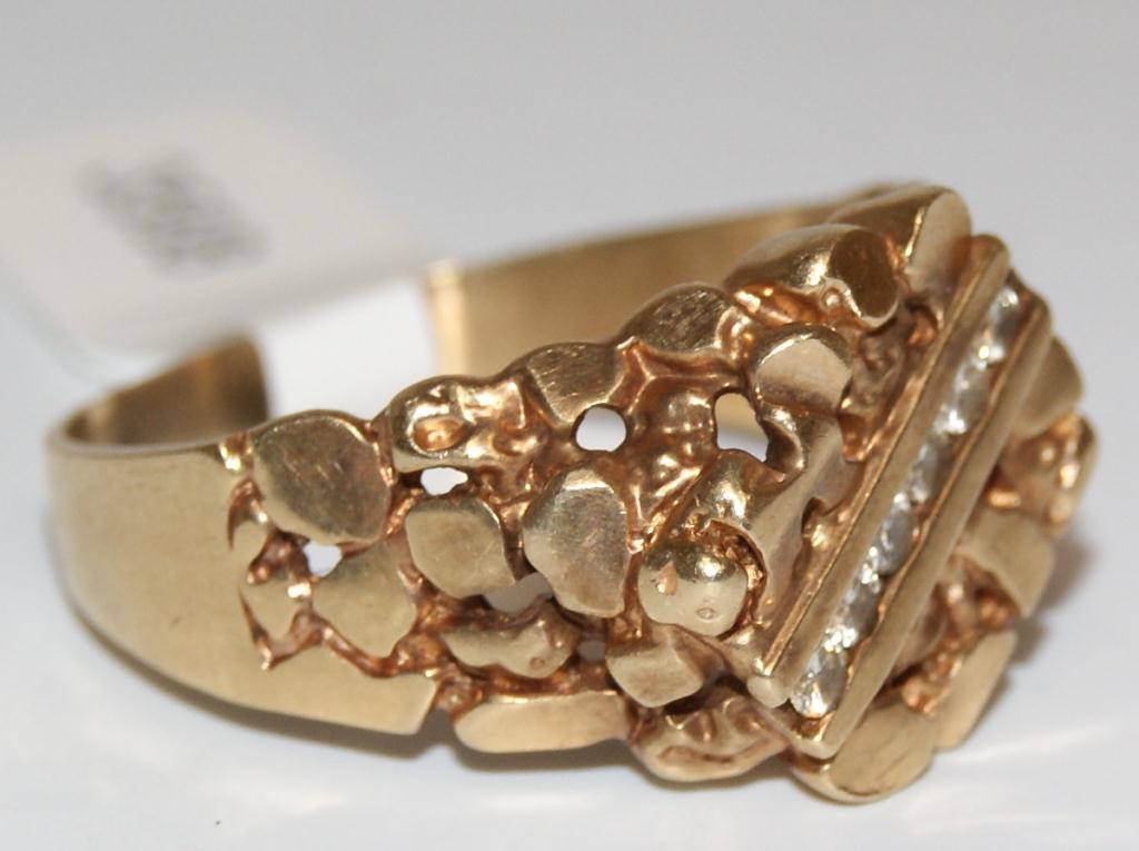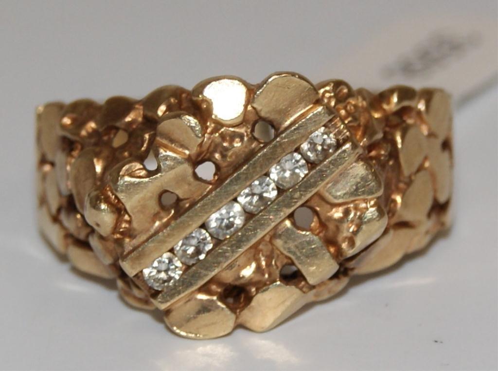 Retail Value $3,750 14Kt Yellow Gold -- Diamonds Nugget Style Hand made Men's Ring --
