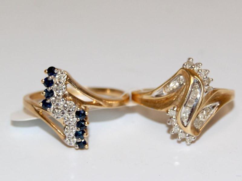 Being Sold Times Money -- (#1) Retail Price $1,940 10Kt White Gold -- Diamonds Cluster Hand Made Ladies Ring -- (#2) Retail Price $1,590 10Kt Yellow Gold -- AAA Cashmere Sapphire & Diamonds Ladies Ring --