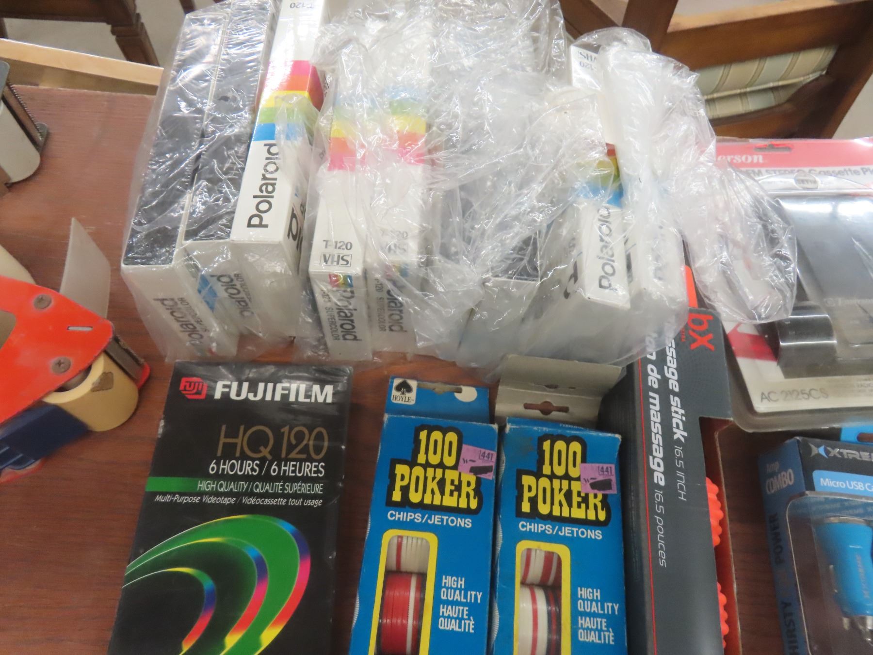 Digital MP3 Player, Tissue Holder, Wall Hooks, Coaxial Cable, Poker Chips, New VHS Tapes, Camera Pouch & More