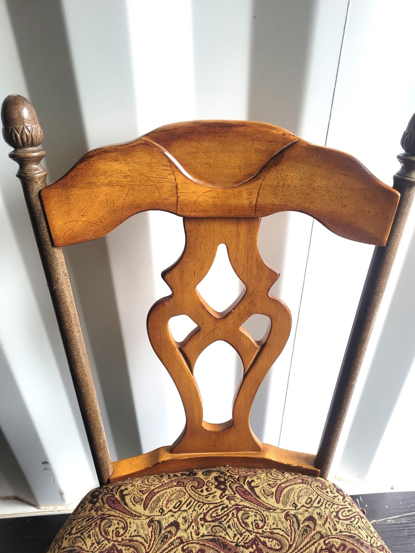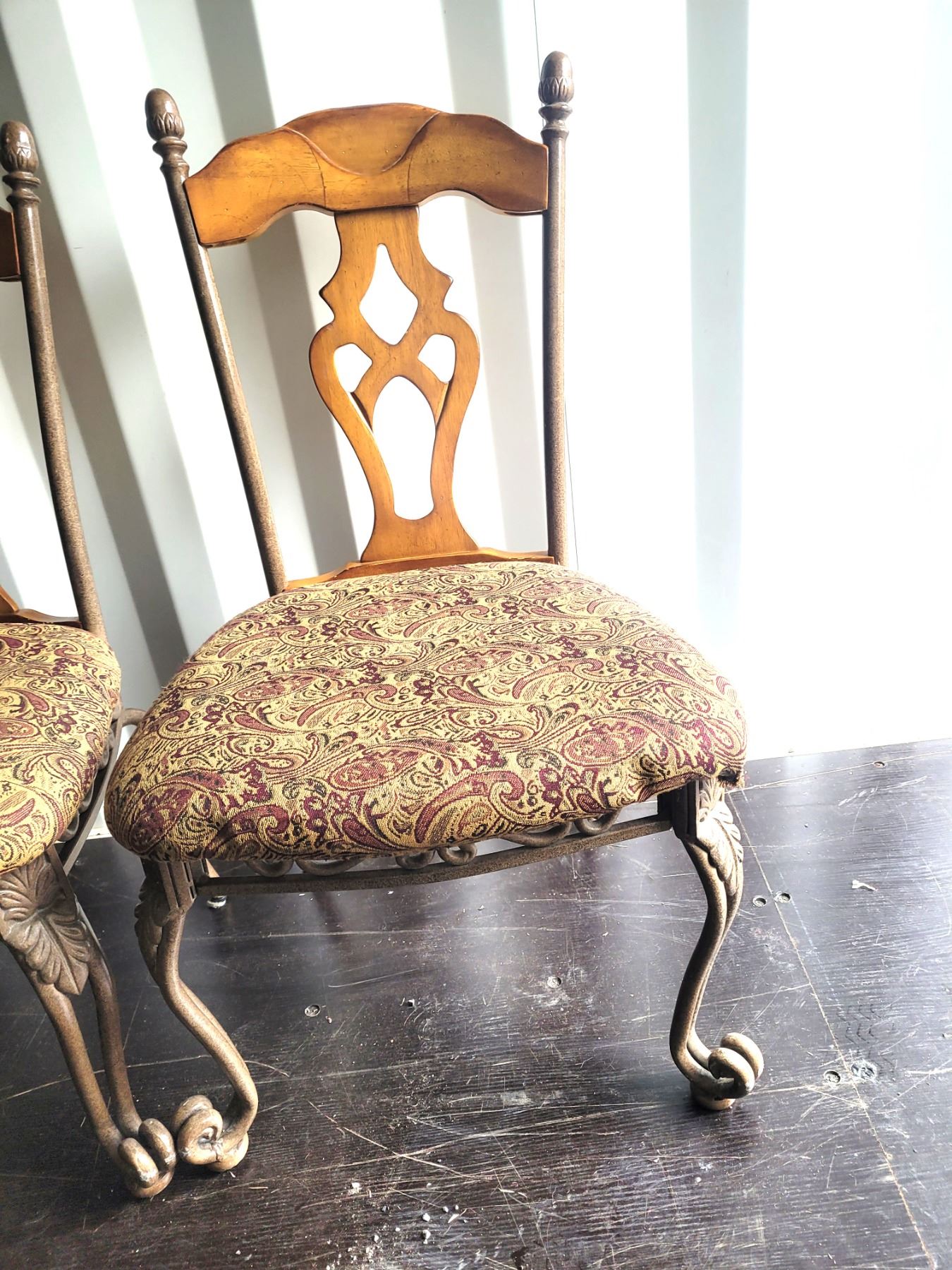 4 dining room chairs, metal & wood back and legs. Heavy. Pickup at 11 am