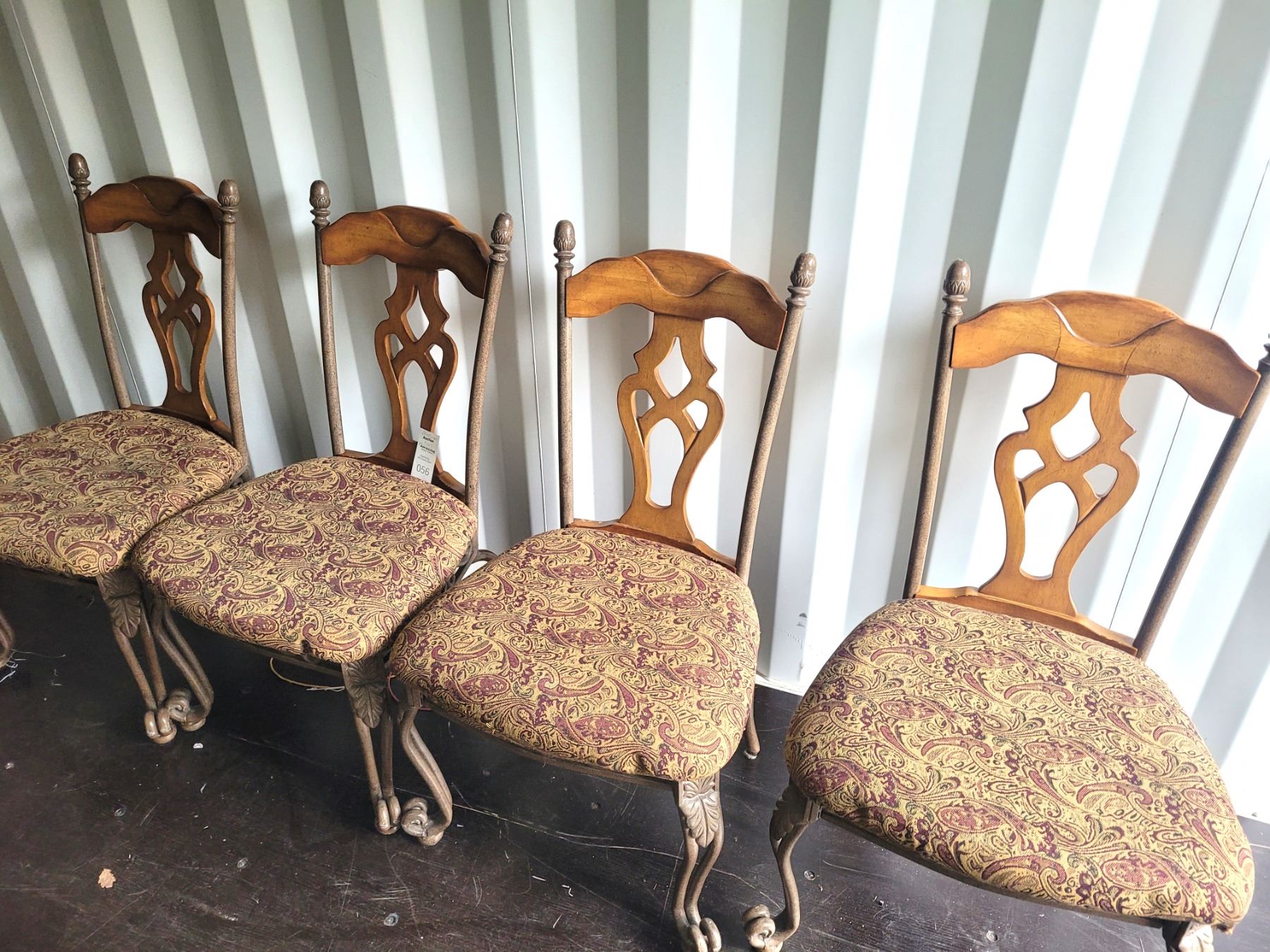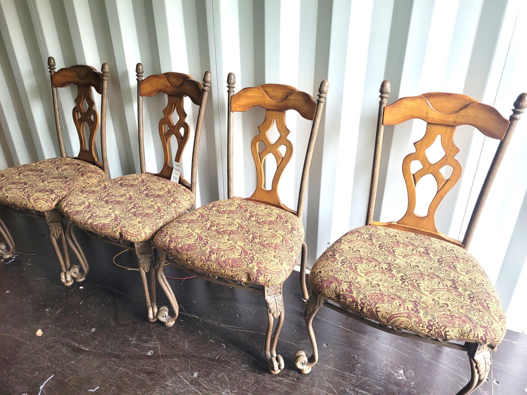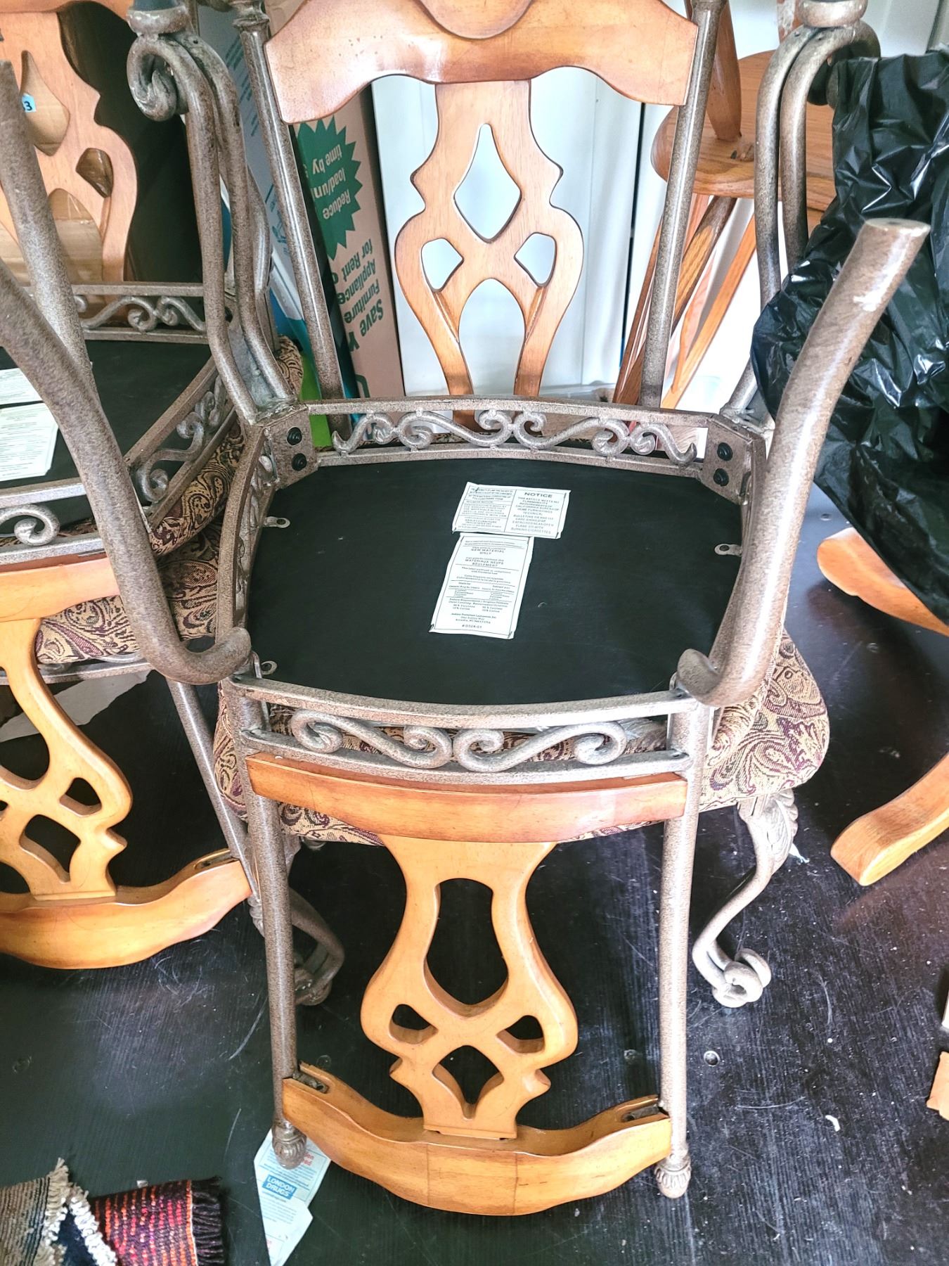 4 dining room chairs, metal & wood back and legs. Heavy. Pickup at 11 am
