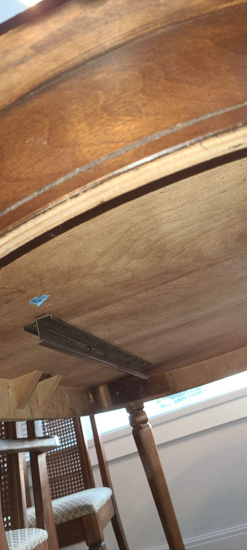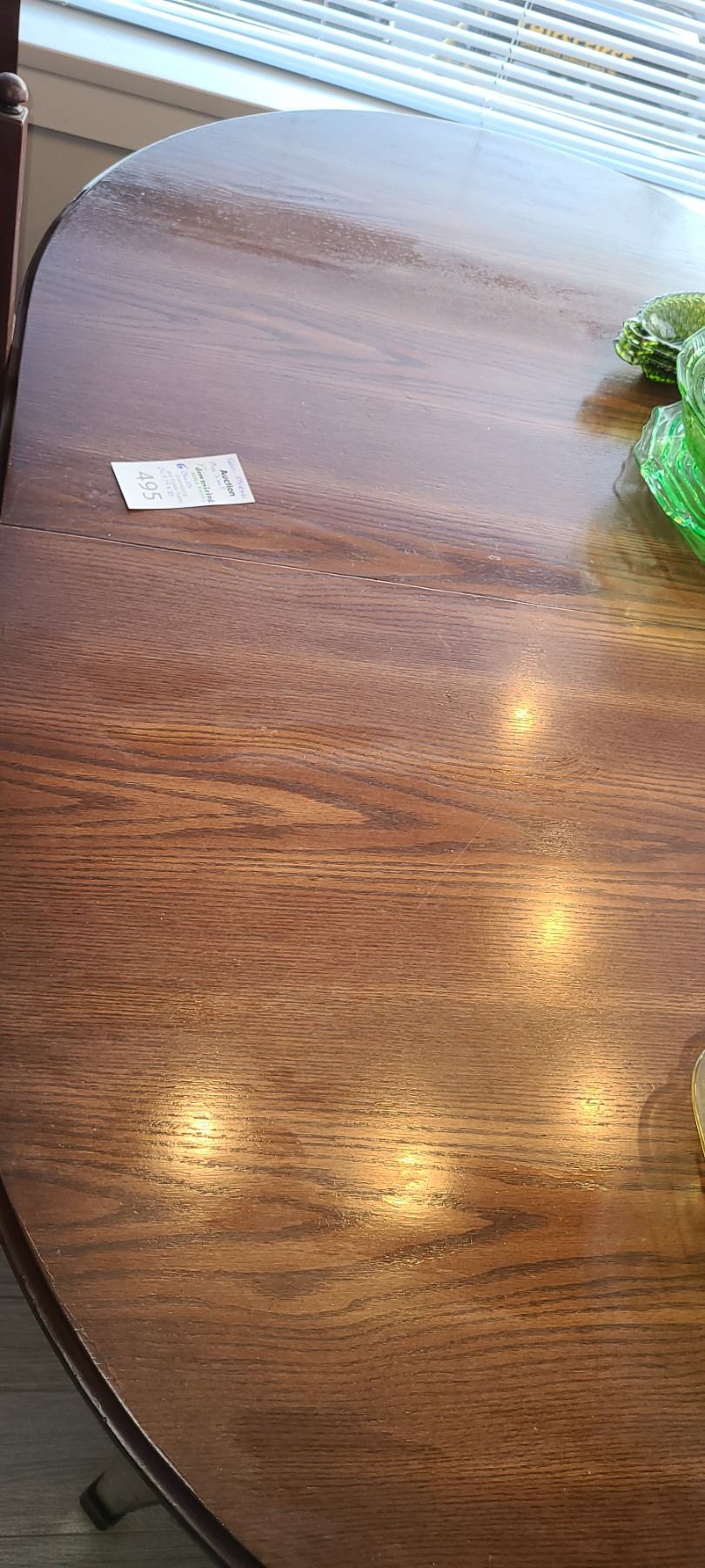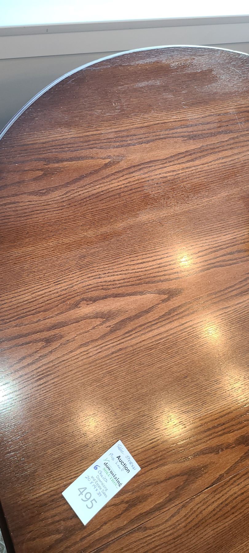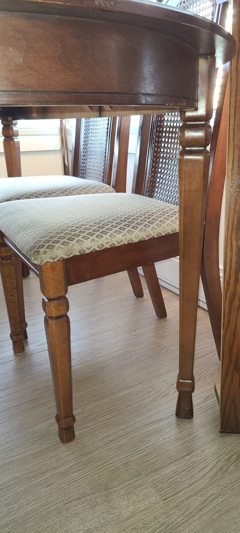 Includes table 59x40x41, plus leaf. 6 chairs 20x19x39. Bring help to remove. Pick up 11-12