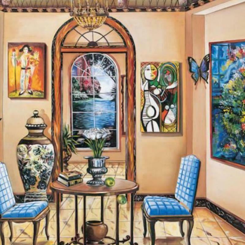 "Dining with the Master" is a limited edition Giclee on Canvas by Alexander Astahov. The piece is numbered, hand signed by the artist, and come with a letter of authenticity. Measures approximately 24" x 36".
