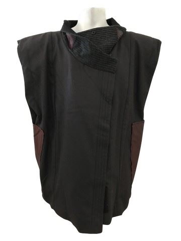 Doctor Strange (2016) - Background Villain's Custom Tunic Vest-This custom-designed black tunic vest was created for a background villain. It features burgundy leather patches on either side and a velcro closure.