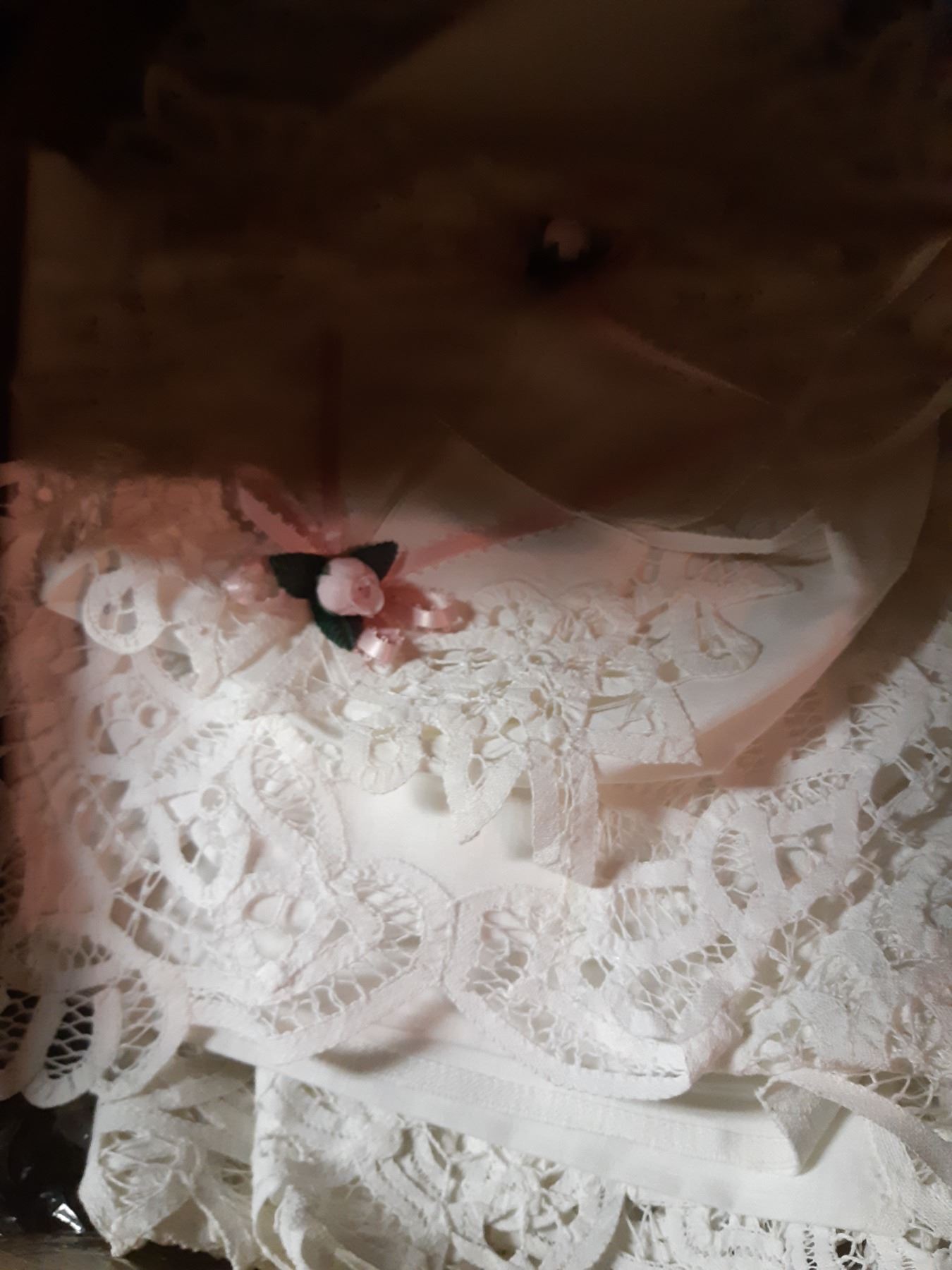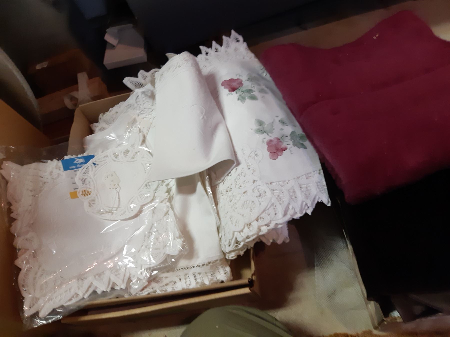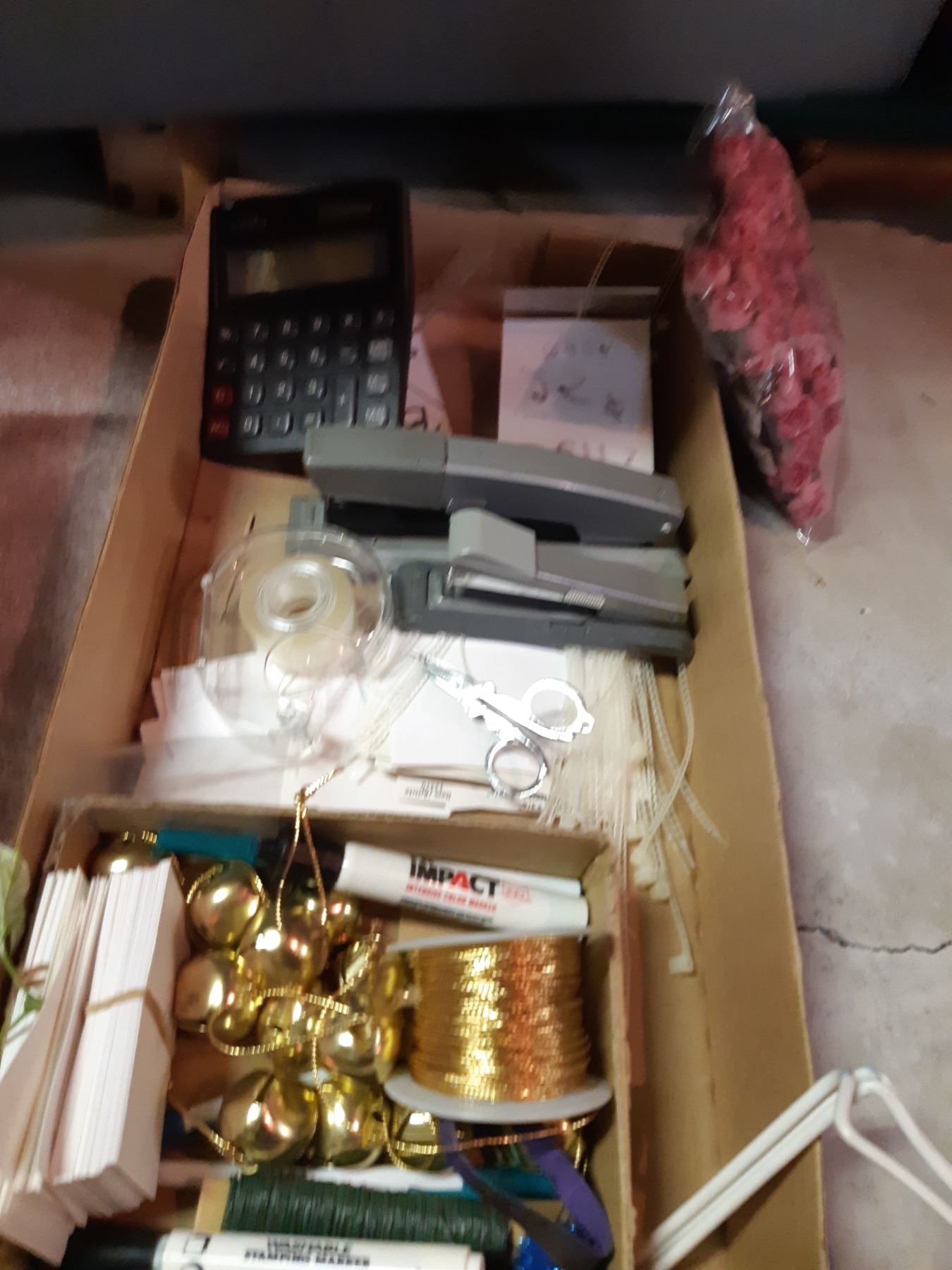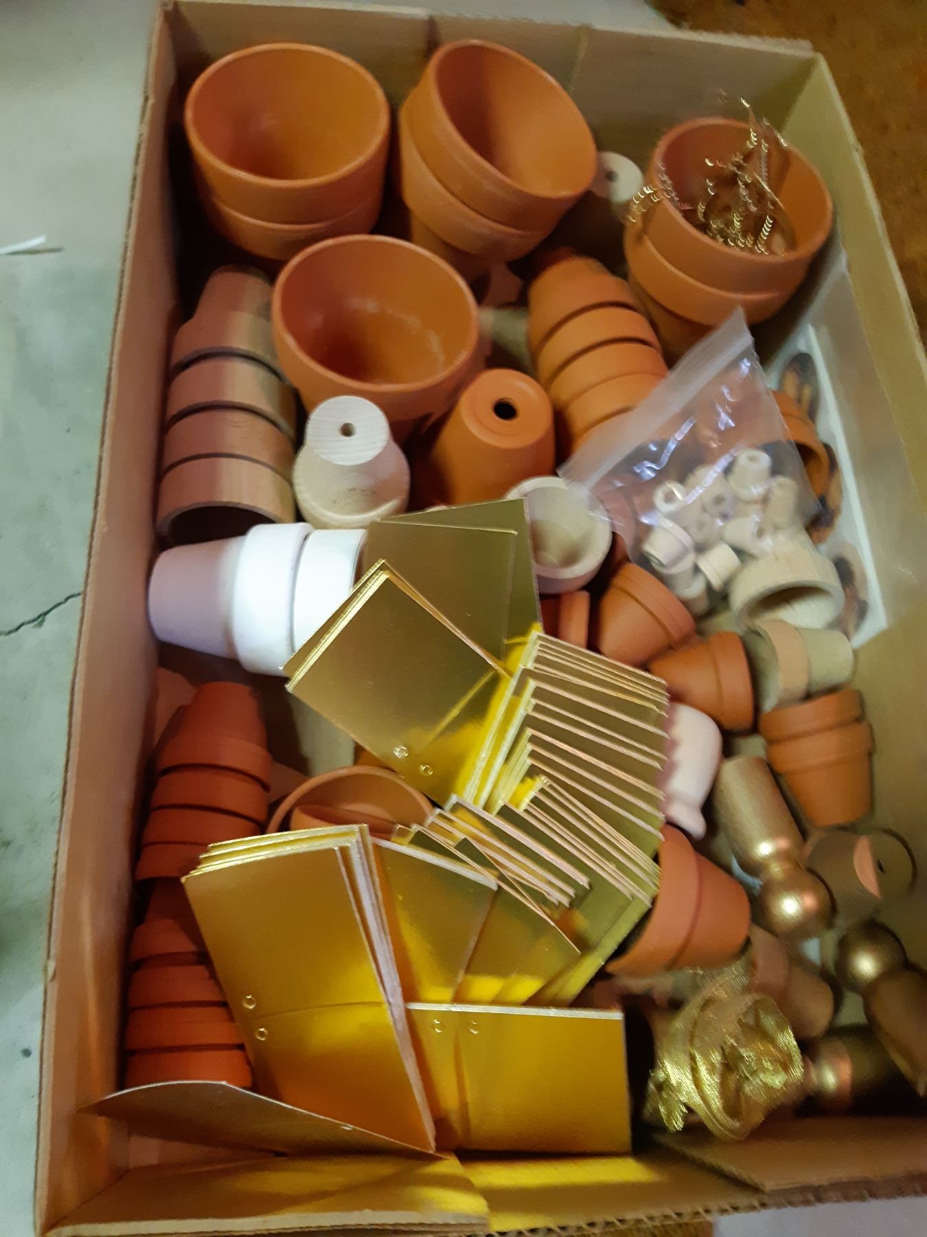 Doilies, frames, jingle bells, buttons, bird ornaments, ribbon, mini terracotta pots, dolls, pickup 11:30