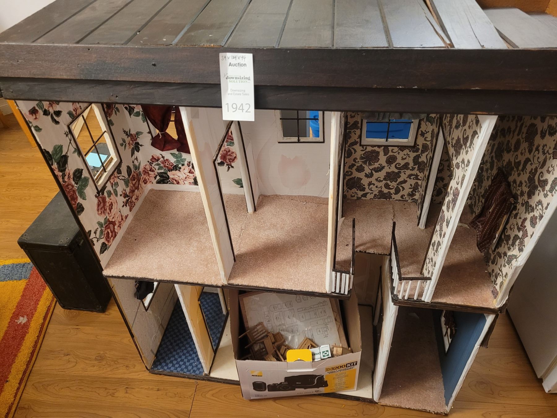 Doll house constructed from wood. Includes some furniture. Incomplete. Pick up 9-10