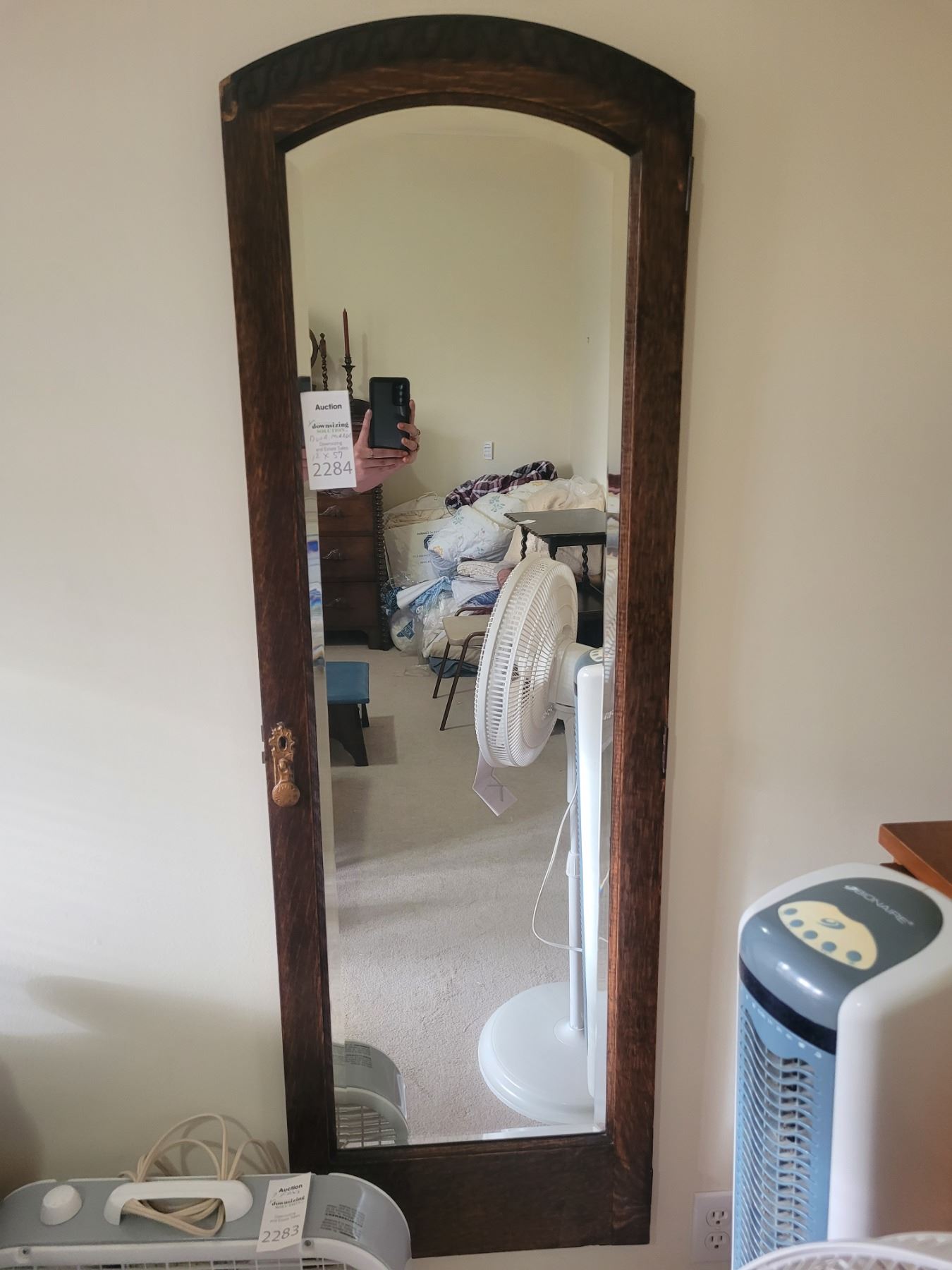 Antique wardrobe mirror beveled glass, oak, 18x58, pickup 10am