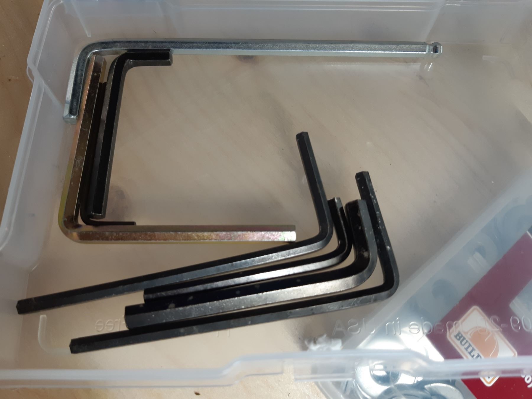Assorted screws, nails, punches, allen keys, washers, wrenches. Pick up 9am.
