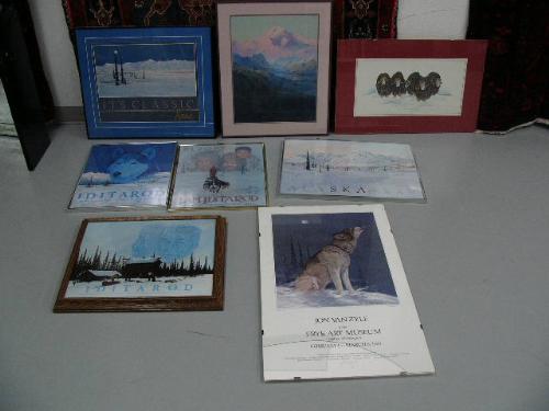 Double matted and framed Sydney Lawrence print and Jon Van Zyle 6 pieces, Lavoure print with 5 musk ox (130)
