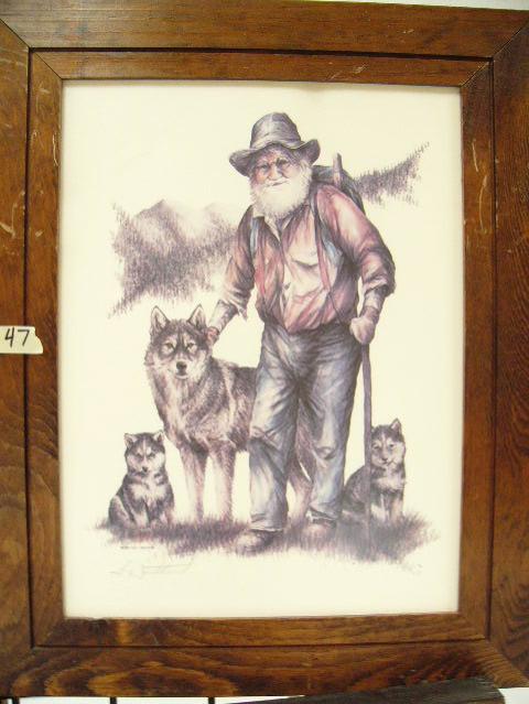 Doug Lindstrom print of miner with 3 dogs (227)