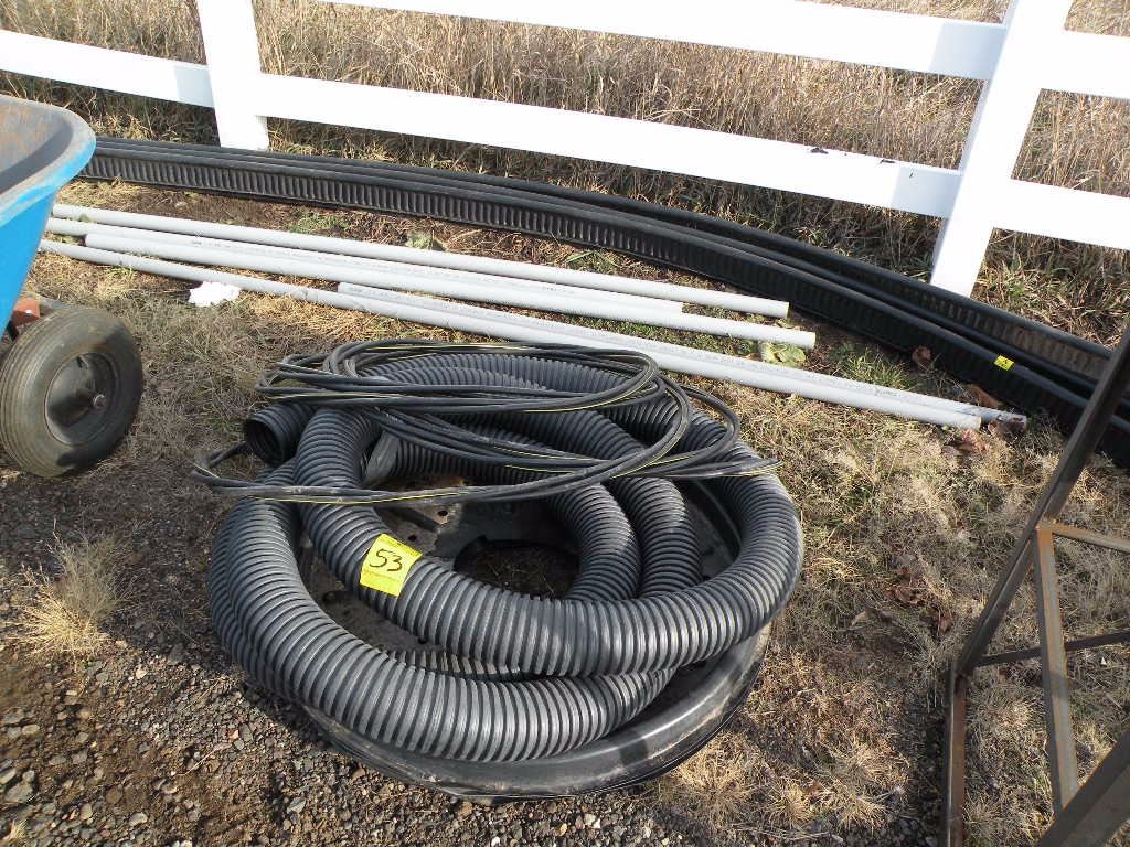 Drain tile, wire, PVC pipe, tree rings, landscape edging