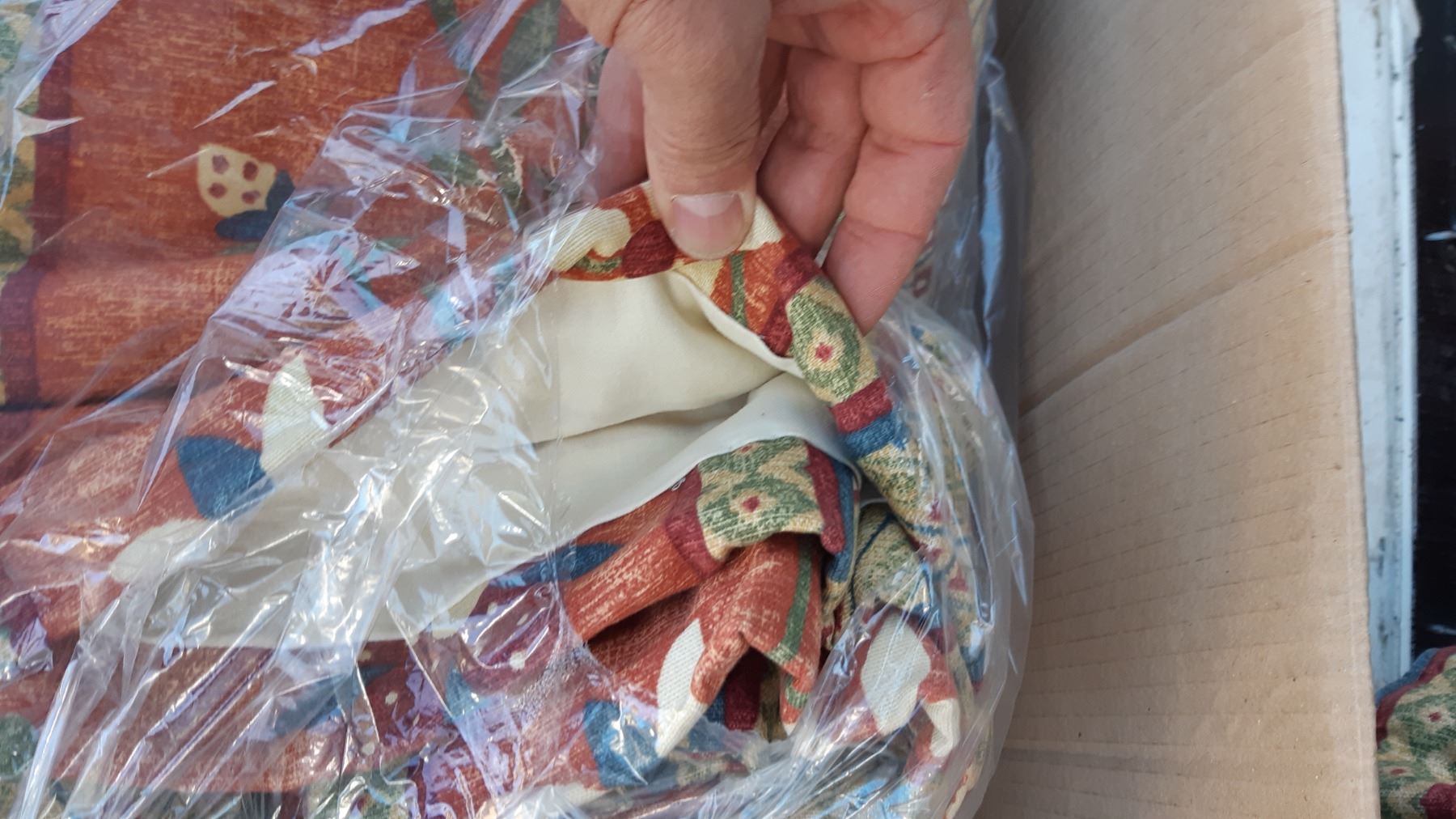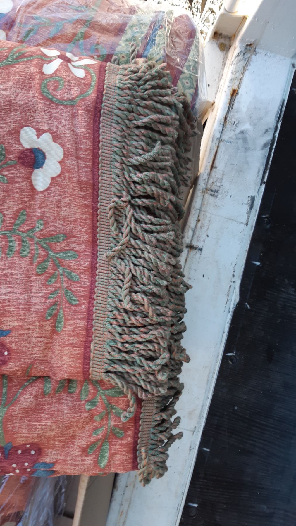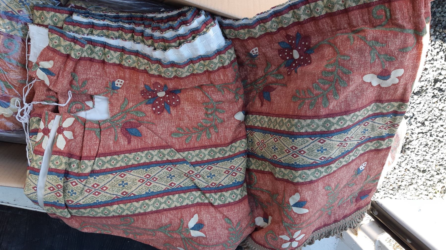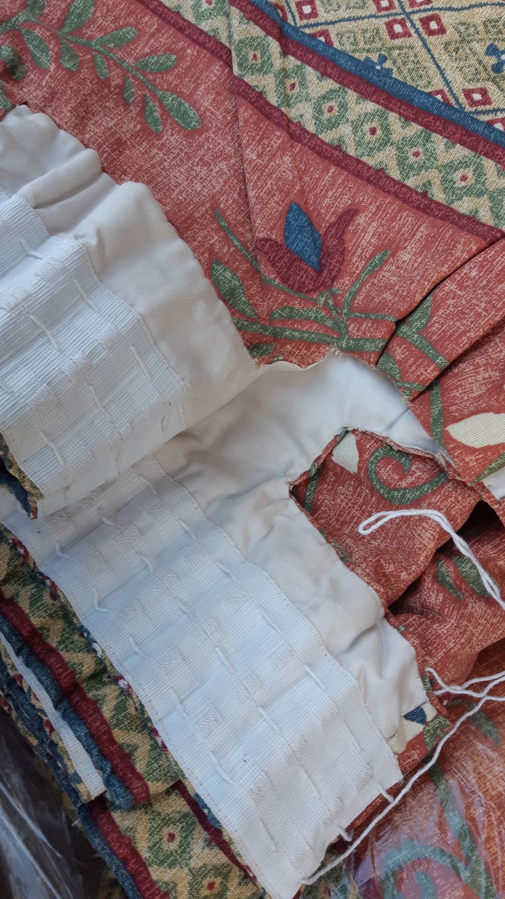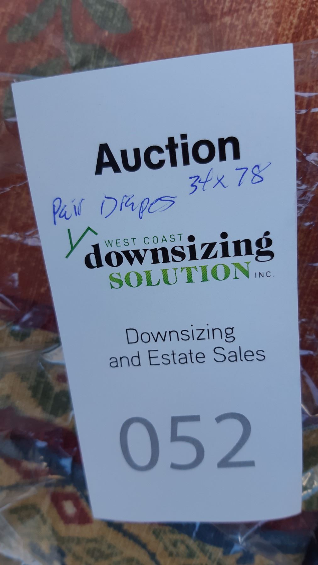 Pair of pinched pleated drapes approx 34x78 ea and valance pickup at 11 am