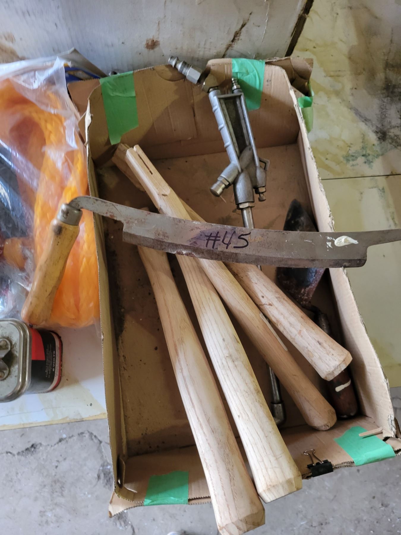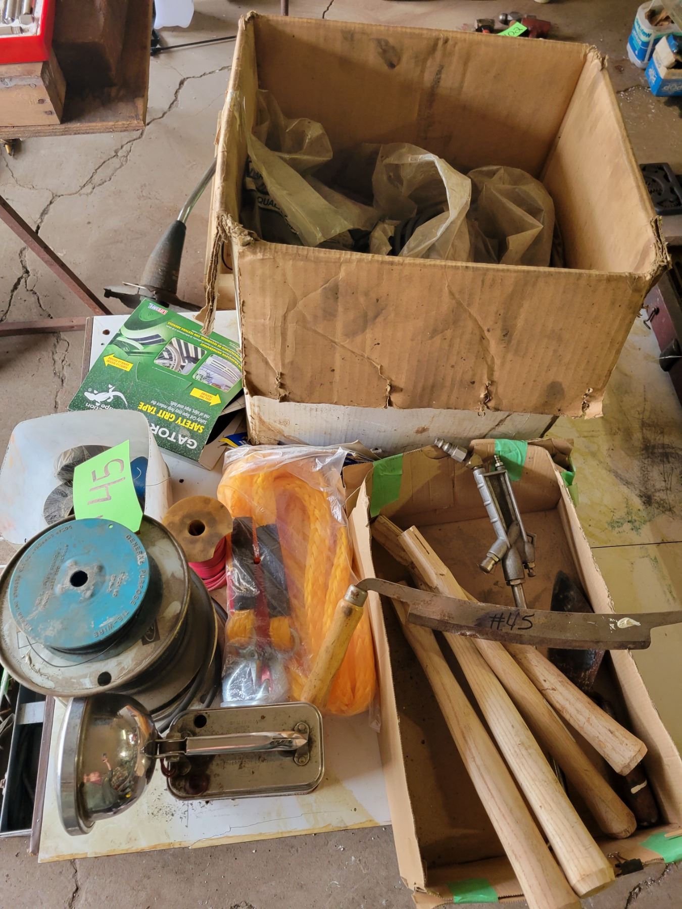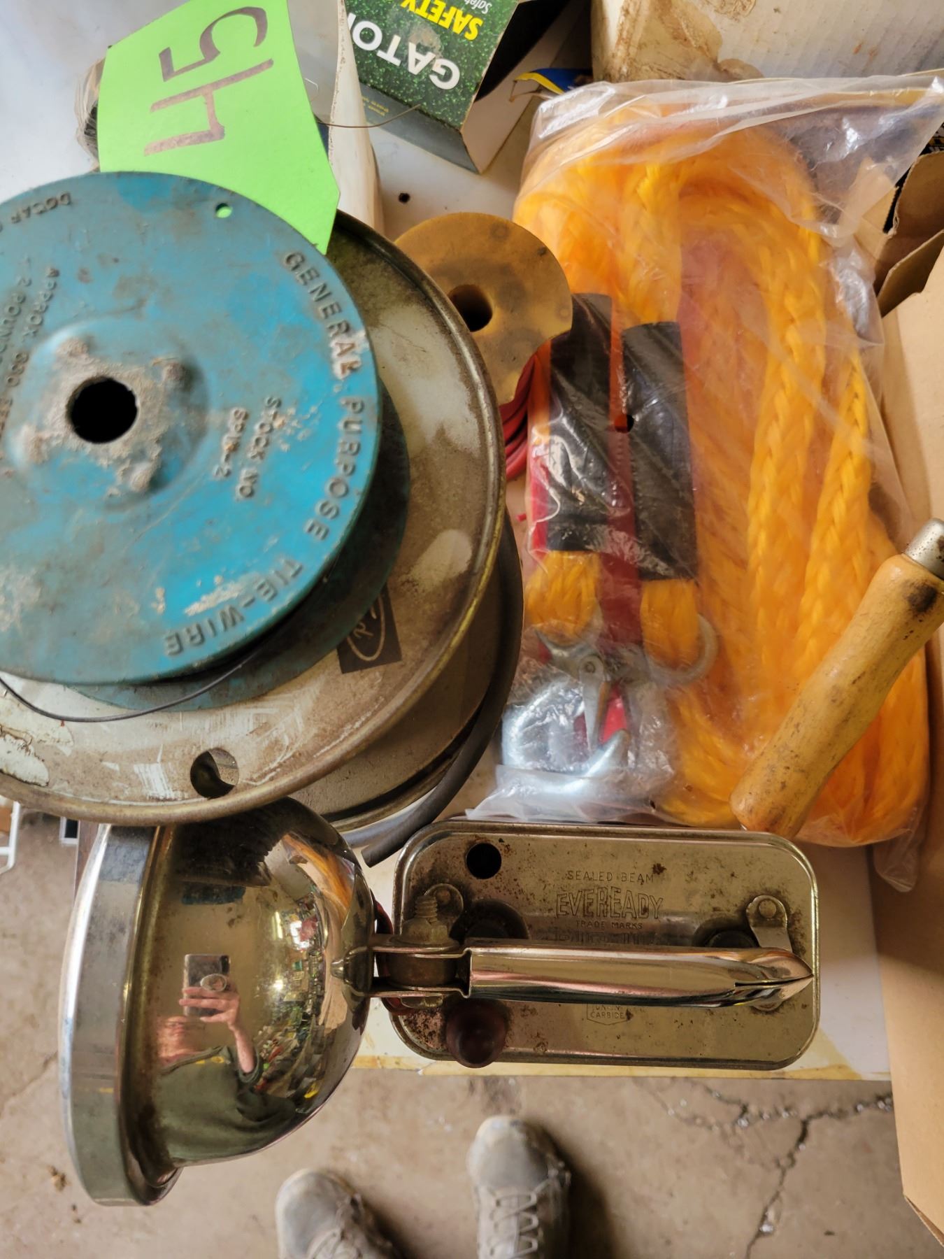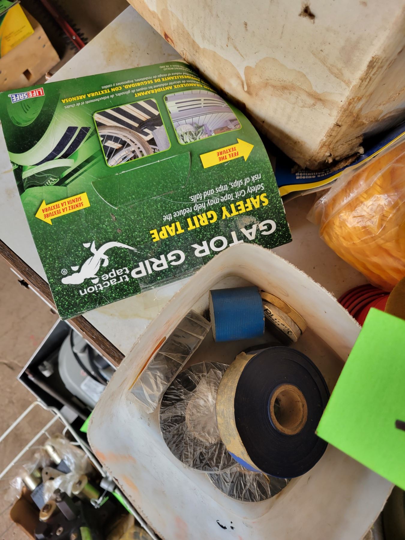 Draw knife, rope, spark plug wire, safety grit tape, box of O-rings & seals etc.