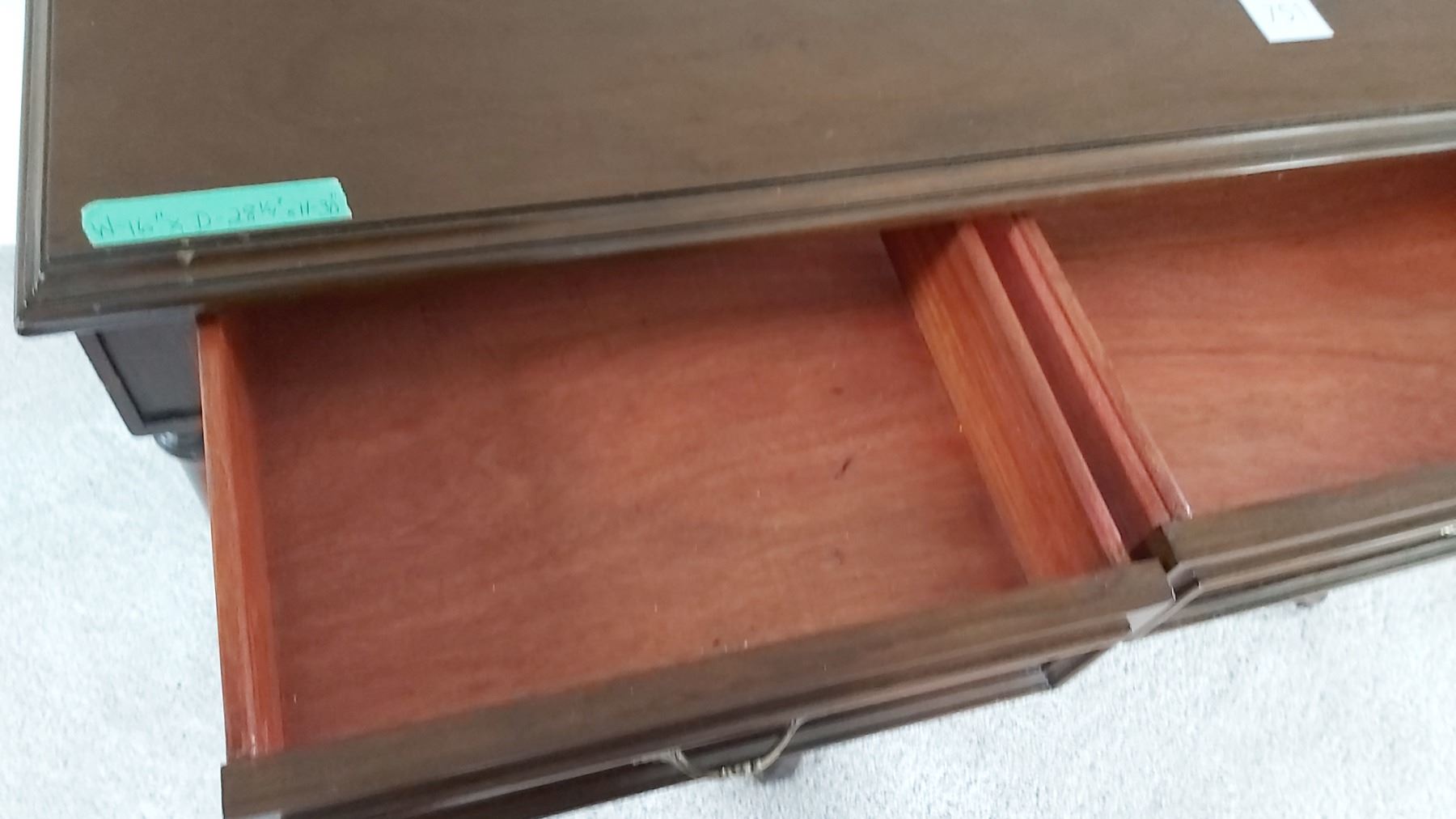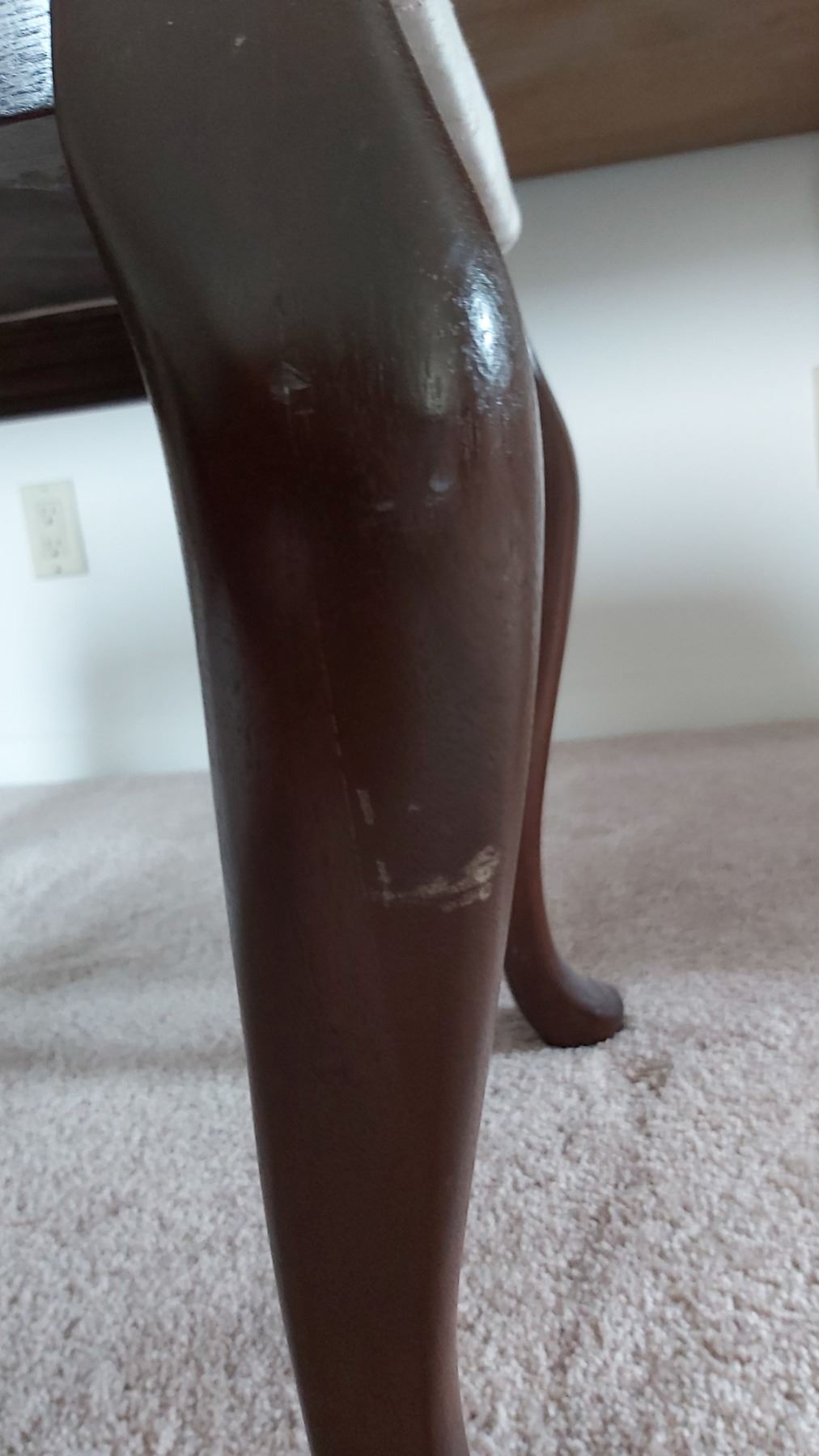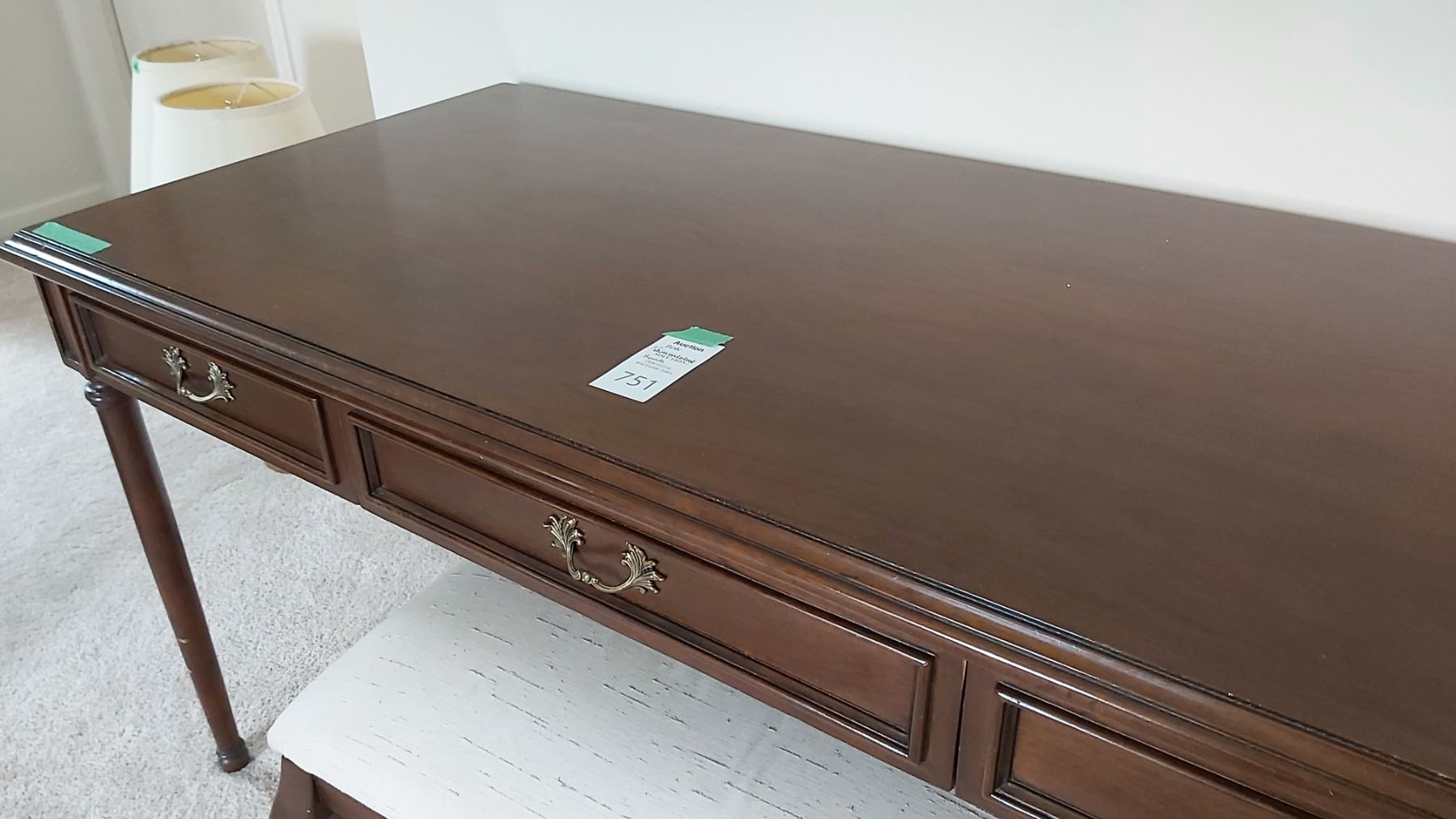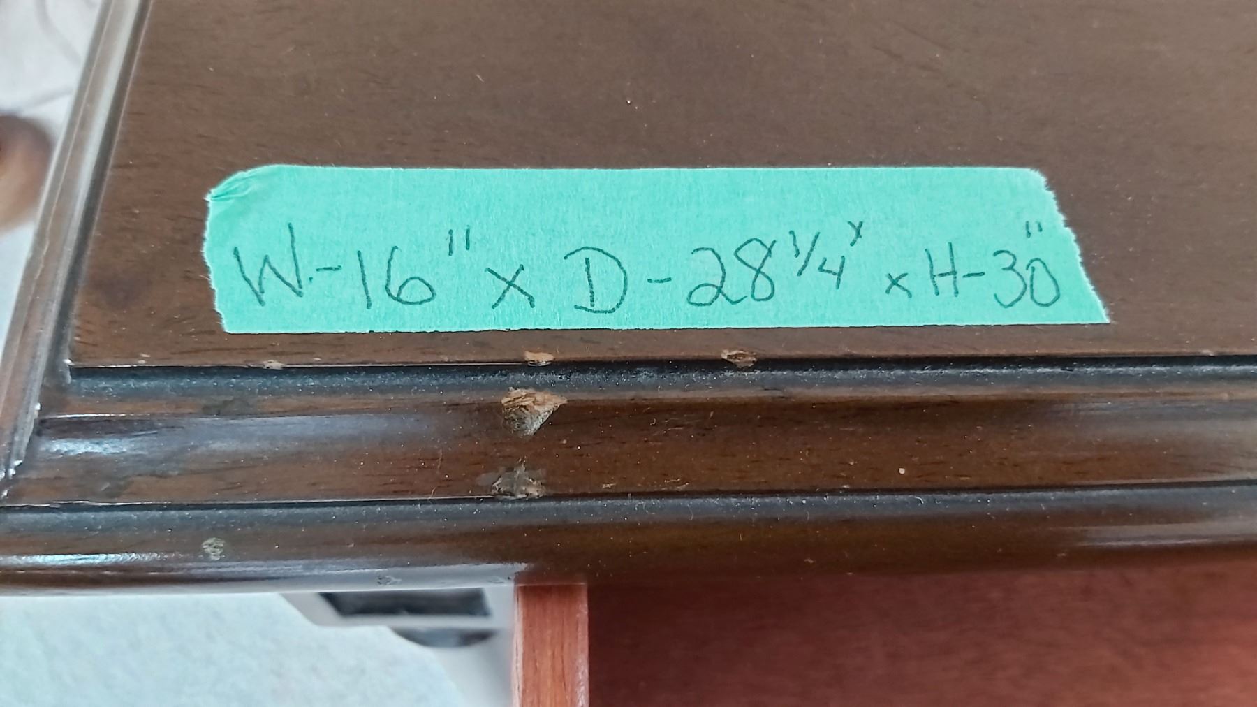 Dressing table 16x28x3, 3 drawers, please note scratches Bench with fabric seat. . Bring help to take down stairs. Pickup at 11 am