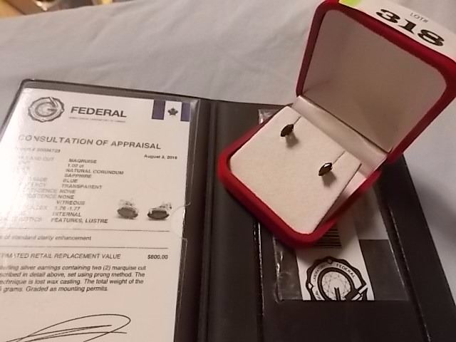 EARRINGS - 1.02 CTW MARQUISE FACETTED SAPPHIRES IN STERLING SILVER SETTING - WITH CERTIFICATE $800 - W-55