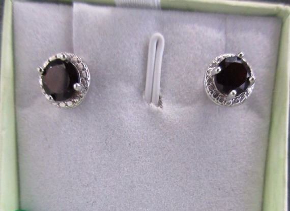 EARRINGS- 1.75CTW GARNET & DIAMONDS IN STERLING SILVER SETTING - RETAIL ESTIMATE $350