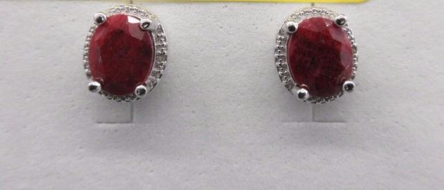 EARRINGS - 4.4 CTW OVAL FACETED RUBY & DIAMONDS IN STERLING SILVER SETTING - INCLUDES CERTIFICATE $410