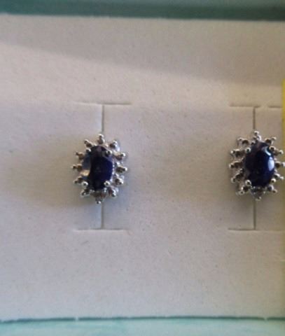 EARRINGS- BLUE SAPPHIRE & DIAMONDS IN STERLING SILVER SETTING - RETAIL ESTIMATE $350