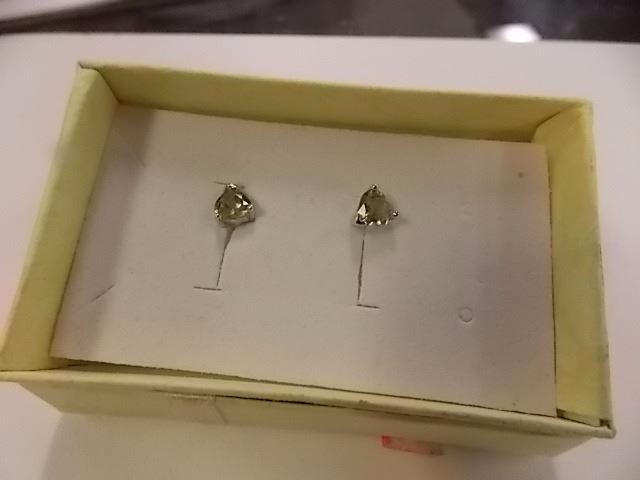 EARRINGS -HEART FACETED PERIDOT IN STERLING SILVER SETTING - RETAIL ESTIMATE $275