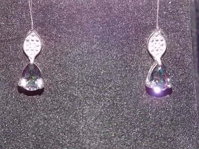 EARRINGS - NEW 1.25 CTW PEAR FACETED MYSTIC TOPAZ & ROUND FACETED DIAMONDS IN STERLING SILVER STUD DESIGNED SETTING - INCLUDES CERTIFICATE $300